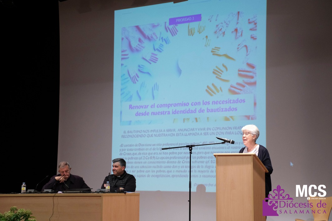 La tercera prioridad fue presentada por la delegada episcopal para una Iglesia de la Caridad y Samaritana, Mercedes Bayo, quien habló de la necesidad de “Renovar el compromiso con los necesitados desde la identidad bautismal”. Explicó que no se trata de repetir acciones, sino de darles nueva vitalidad, superando el cansancio y recuperando la alegría del Evangelio y de la misericordia.