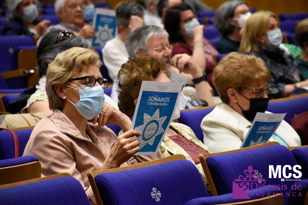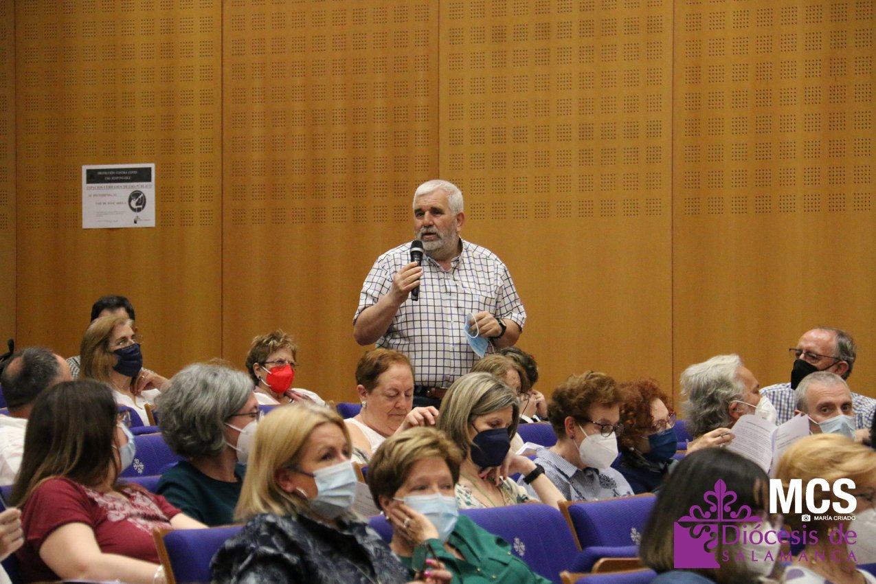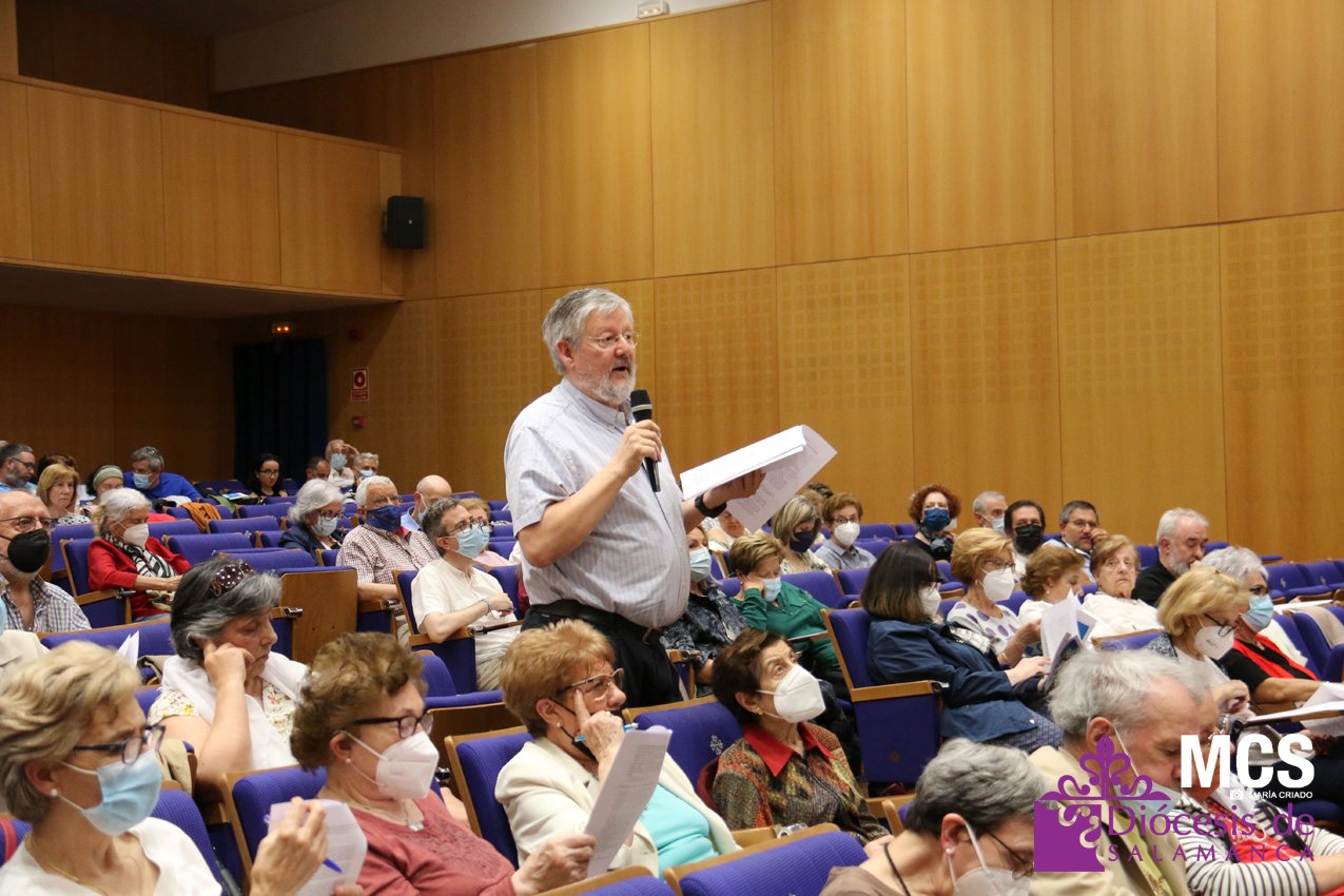 El encuentro tuvo lugar en el auditorio de Calatrava, y asistieron cerca de 200 personas. El responsable sinodal de la Diócesis de Salamanca, el vicario de Pastoral, Policarpo Díaz, define la asamblea como una jornada de convivencia, “de oración, de reírnos, de compartir, de hablar, de debatir…”.