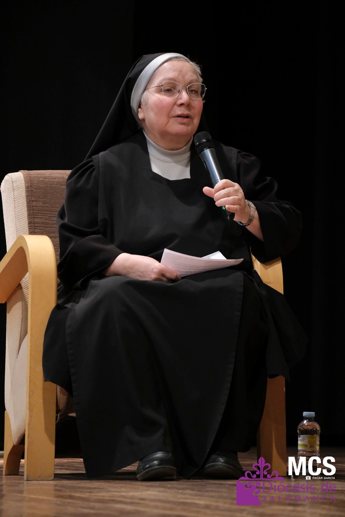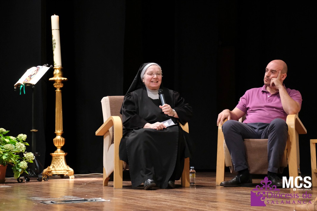 María del Carmen Reales, benedictina, relató cómo su llamada se gestó en la JMJ de 1989 en Santiago. “El bautismo es entrar en el Cuerpo de Cristo y sentirme hija del Padre”, dijo, vinculando su vocación contemplativa con el “morir y resucitar con Cristo” propio del sacramento. Compartió también un momento de noche tras la muerte de su hermana: “En el dolor, el Señor me sostuvo y me reconstruyó”.