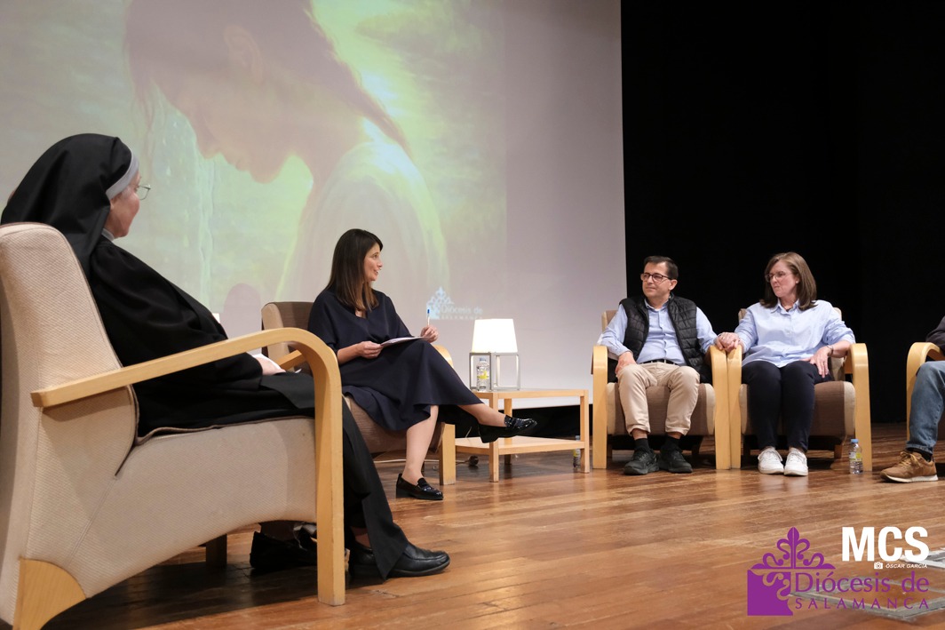 Como matrimonio, Rosario Martín y Ángel Rodríguez describieron un antes y un después tras los retiros de Emaús y, sobre todo, Proyecto Amor Conyugal. “Nos casamos sin conocer nuestro sacramento; ahora vivimos con Dios en el centro y la oración diaria conjunta”, explicaron. Contaron con sencillez cómo las dificultades se convierten en oportunidades para crecer —hasta un “botón del lavavajillas” puede educar en paciencia y caridad—. Su convicción: impulsar en parroquias un método diocesano para matrimonios y familias, porque “si no hay familia cristiana, no hay vocaciones”.