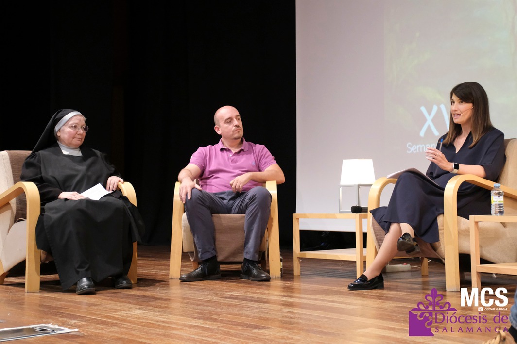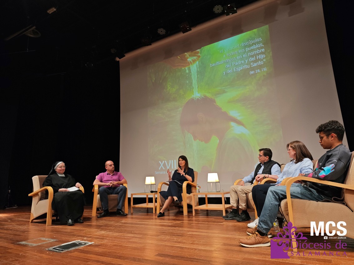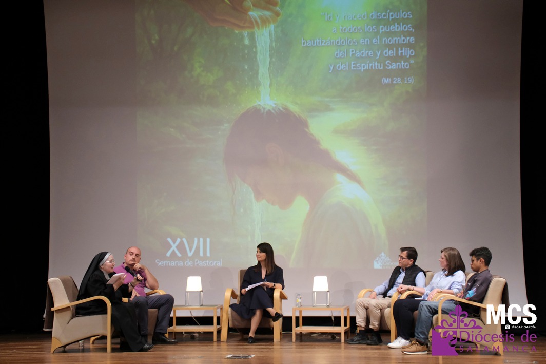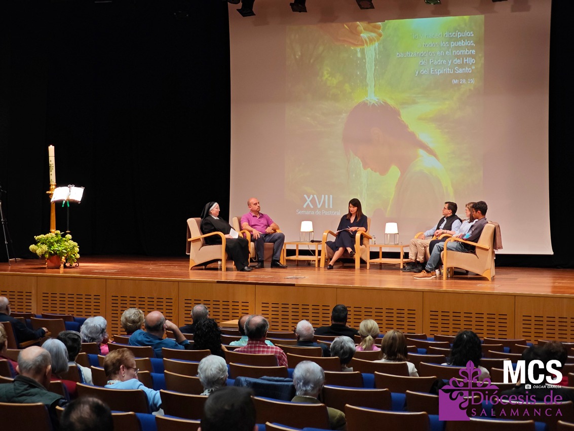 La Semana de Pastoral puso rostro y voz a la fe con la mesa de experiencias vivas, “La belleza de ser bautizados”, moderada por la periodista, Sheila Sánchez Prieto. En el auditorio de Calatrava escucharon cómo el bautismo ha marcado —y sigue marcando— la vida de María del Carmen, Iván, Rosario y Ángel, y Daniel.