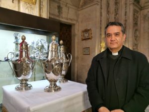 Y después de la homilía del obispo, los sacerdotes renovarán la promesa sacerdotal, “diciendo aquello que afirmaron el día de su ordenación sacerdotal”, y a continuación, todo el pueblo ora por ellos y por el obispo. Las tres ánforas contienen los óleos que se van a repartir por todas las parroquias de la diócesis. “Una para la Unción de los enfermos, otra con el Santo Crisma, y una última para los catecúmenos para el Bautismo”, detalla Vicente de Paz.