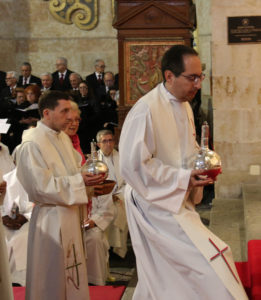 El delegado de Liturgia de la Diócesis de Salamanca, Emilio Vicente de Paz, recuerda que esta celebración recibe ese nombre por la palabra Crisma, “que es ungido, y es Cristo quien nos asocia a él por medio de los sacramentos de la iniciación: el Bautismo, la Confirmación y la Eucaristía”. Al respecto, insiste en que para el Bautismo y la Confirmación se necesitan varios óleos: “El de los catecúmenos como preparación, y el Santo Crisma, que es el que consagra al bautizado, y además, hay otro óleo que es el de los enfermos”, aclara este sacerdote.