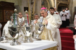 Durante la celebración, el obispo bendecirá el óleo de los catecúmenos, destinado a quienes se preparan para el Bautismo, y el óleo de los enfermos, con el que la Iglesia acompaña a quienes atraviesan la enfermedad, haciéndose presente el consuelo de Cristo. Asimismo, consagrará el Santo Crisma, que permite “incorporarnos a la vida en Cristo mediante la efusión del Espíritu Santo”, con el que serán ungidos los nuevos bautizados, los confirmados y también los sacerdotes.