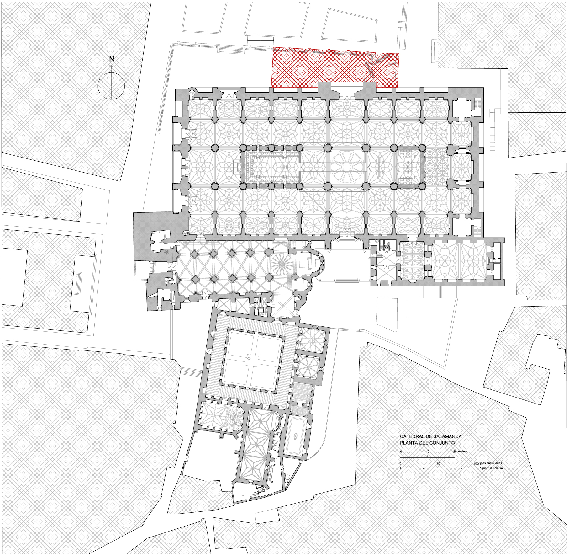 El resto del espacio, las dos naves del fondo, se reservarían para la Catedral con una nueva puerta de acceso, por la plaza de Anaya. Como precisa Valentín Berriochoa, “sería el almacén del templo en condiciones de estanquidad, seguridad y grado de humedad para sacar todo lo que hay en los sótanos de la sacristía y trasladarlo a este punto”. De esta forma, se recuperaría aquel espacio de la Catedral para visitas, “ya que la sacristía es el gran tesoro para abrir al público”. El arquitecto confirma que la recuperación de esta área “está prevista en el plan director de la Catedral como visita cultural”.