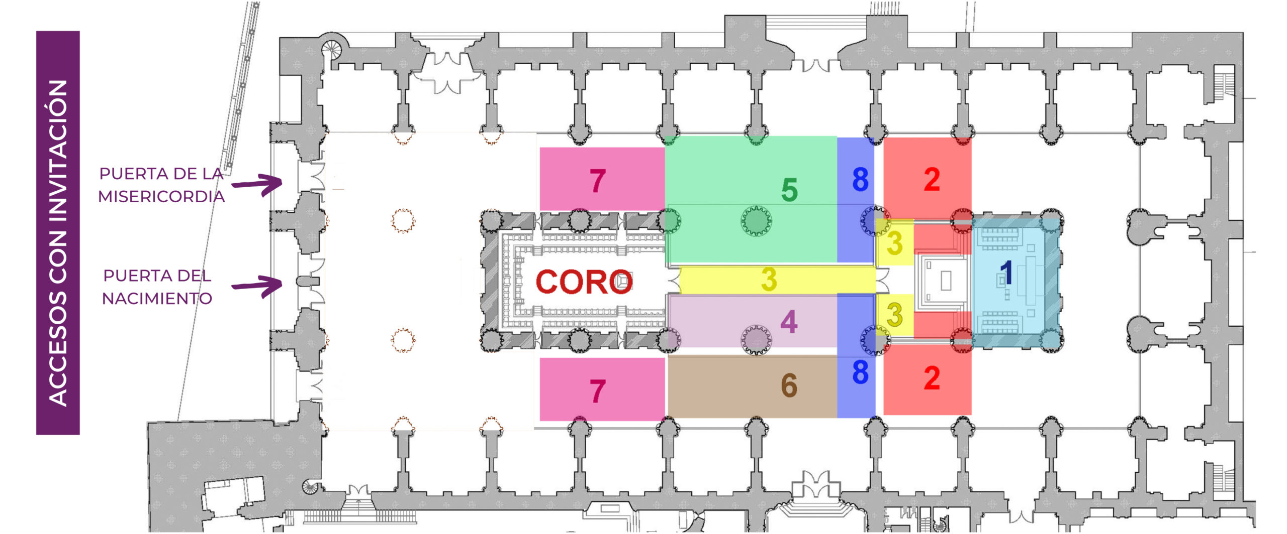 En la toma de posesión de Mons. José Luis Retana también estarán representados los organismos diocesanos, como los servicios y delegaciones; los arciprestazgos y sus parroquias; los movimientos y asociaciones, los religiosos y las cofradías, ubicados en diferentes zonas de la Catedral Nueva, distribuidos por colores que están identificados en las invitaciones, en un total de 8 zonas.