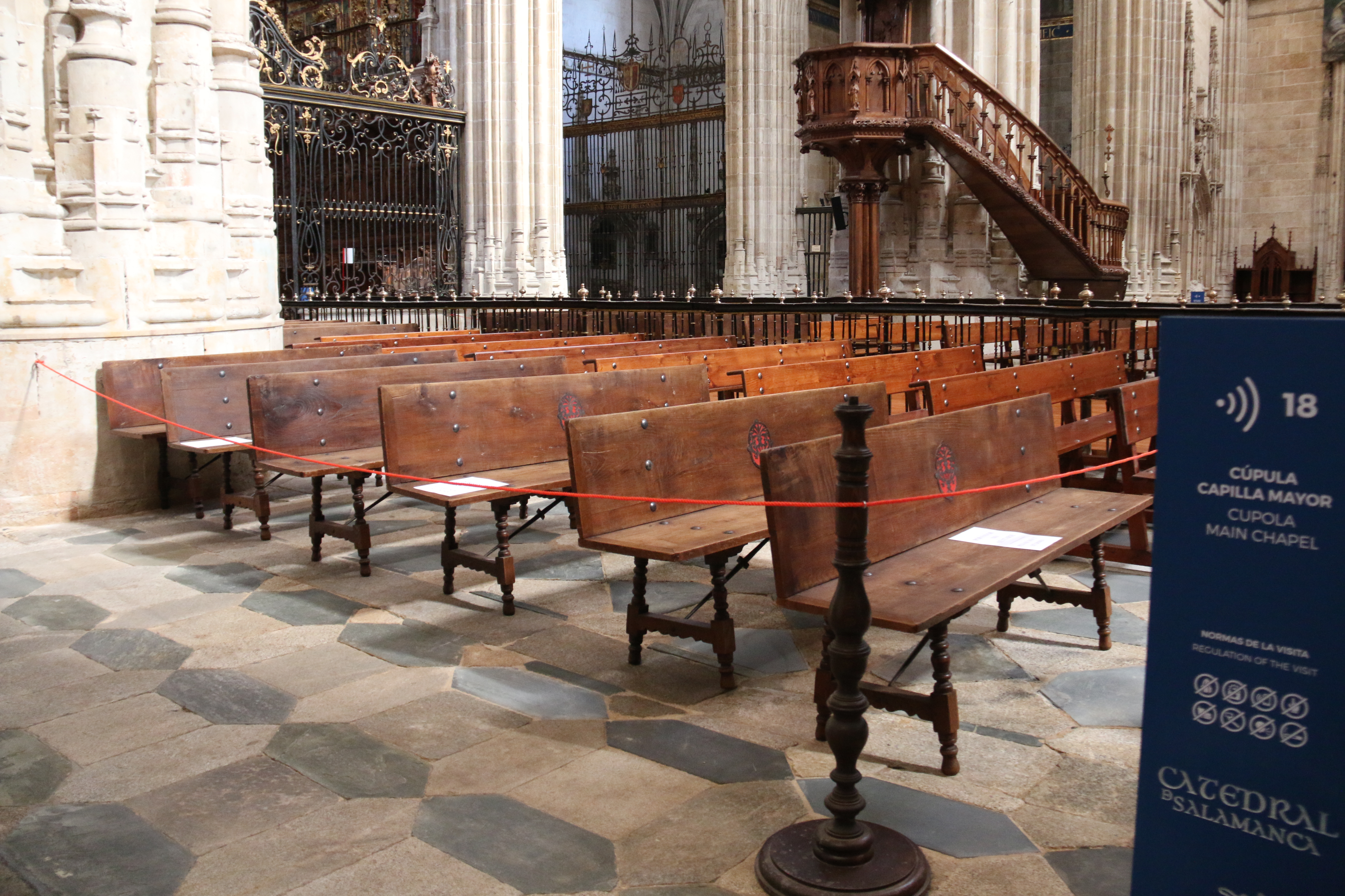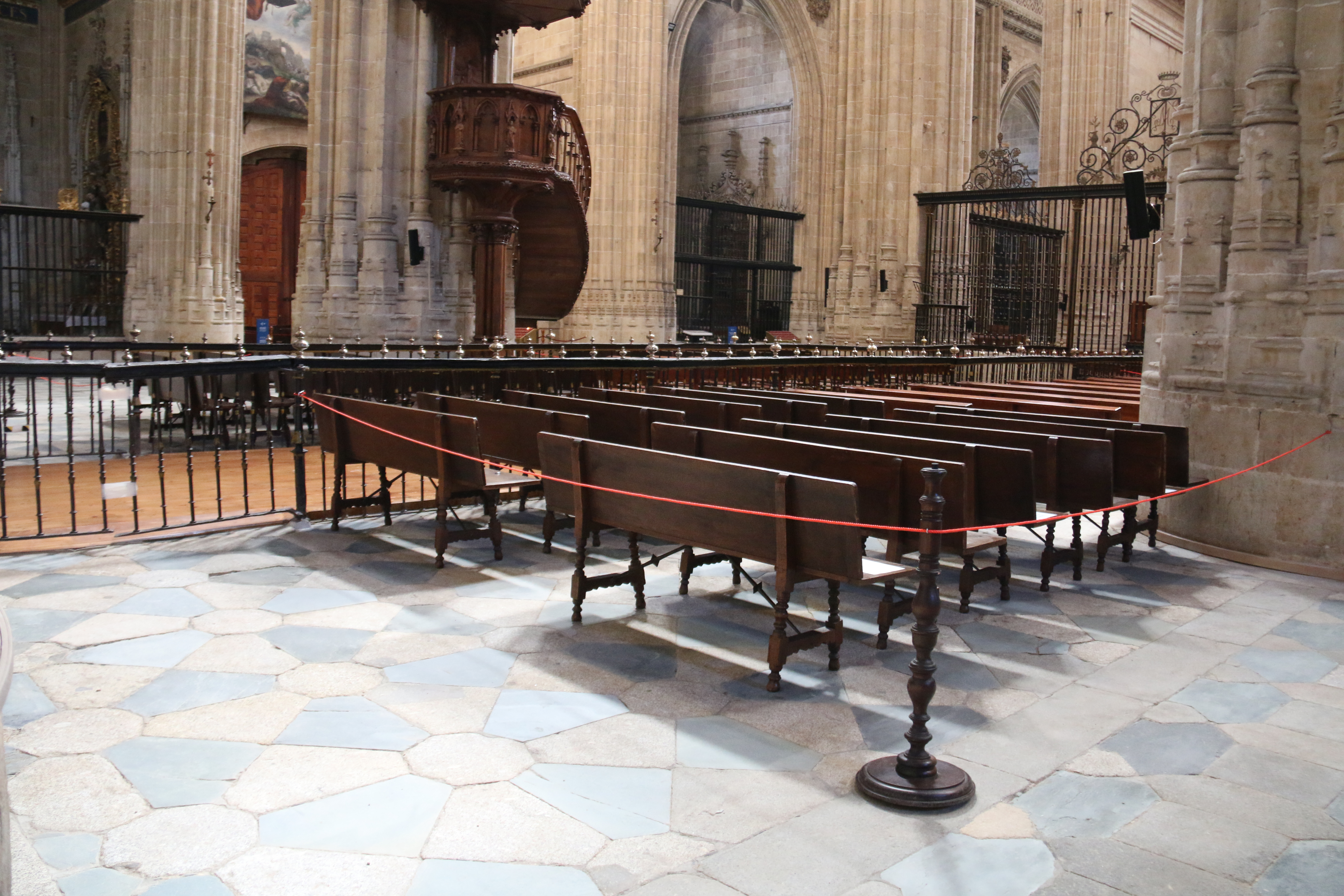 Durante el estado de alarma, que causó el cierre de la Catedral de Salamanca durante casi cuatro meses, el Cabildo de la Catedral decidió intervenir en la nave central del templo nuevo para actuar sobre el suelo de madera que estaba en mal estado. Tras conseguir el visto bueno de la Comisión Territorial de Patrimonio de la Junta de Castilla y León, como detalla el canónigo de Obras, Jesús Terradillos, “abordamos la restauración del piso del suelo correspondiente a la nave central, que tiene la vía sacra y los dos laterales”.