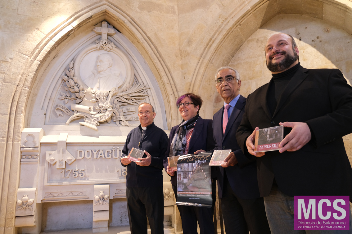 El CD con algunas de las obras de Manuel José Doyagüe (Salamanca, 1755-1842) se grabó en la capilla de la Catedral Vieja donde se encuentran sus restos mortales, en la de Santa Catalina. Su excelente acústica lo permitía, como apuntaba ayer el director musical, Antonio Santos, durante la presentación. Este CD, sobre el Miserere de Doyagüe ha sido editado por el Cabildo de la Catedral de Salamanca, tras la recuperación de algunas de sus obras.
