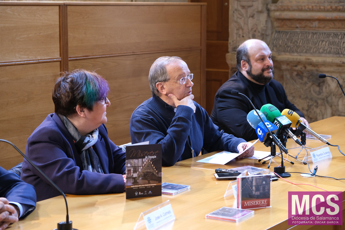Santos también recordó que la recuperación del miserere se produjo gracias a tres instituciones: Catedral, la Junta de Semana Santa de Salamanca y el Ayuntamiento de la capital, a través de la Fundación de Cultura y Saberes. “Desde 2013 está en marcha el proyecto, con el que estamos recuperando música del siglo XVIII y XIX, de estética clasista y desconocida en España, de autores españoles, sacando obras que no se han interpretado en 150 años, música viva, vigorosa, de una gran calidad”, remarcó el director musical.