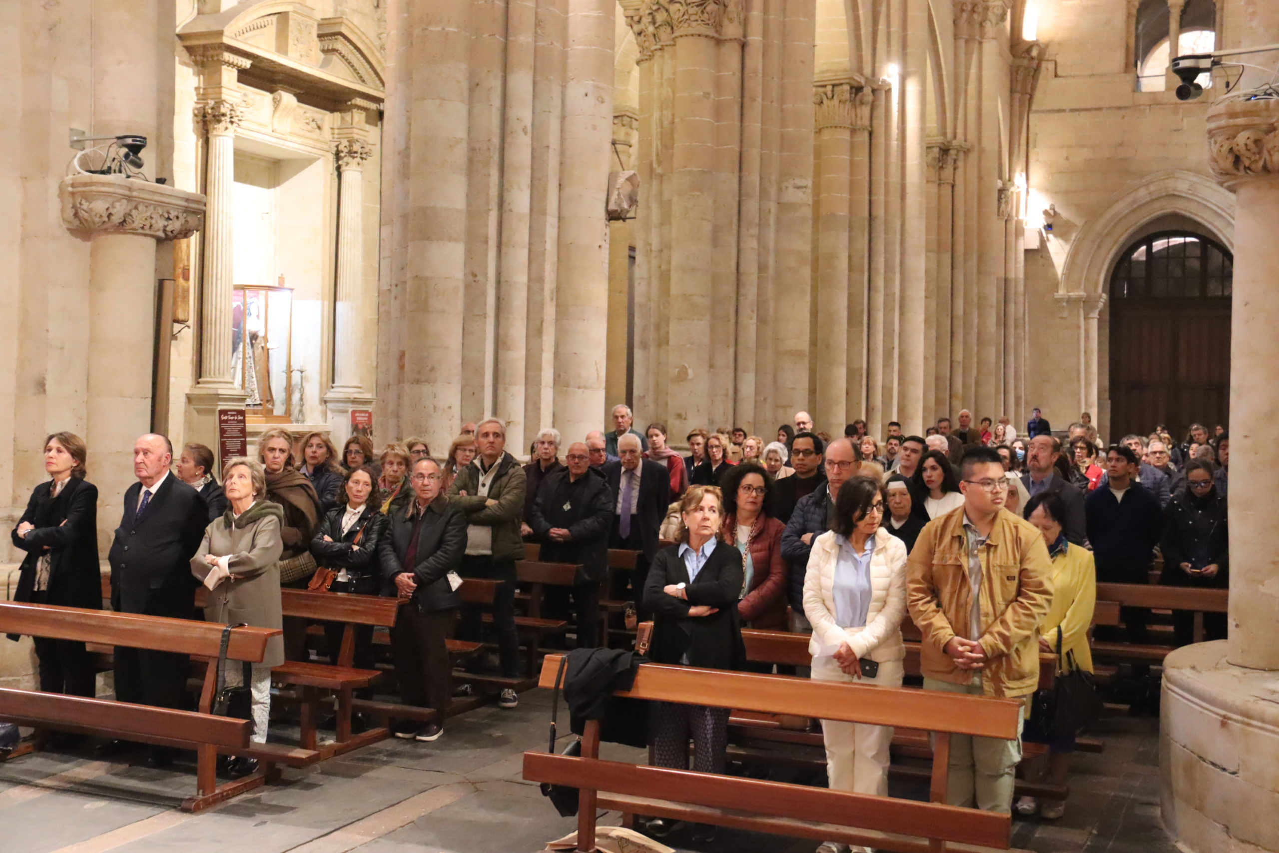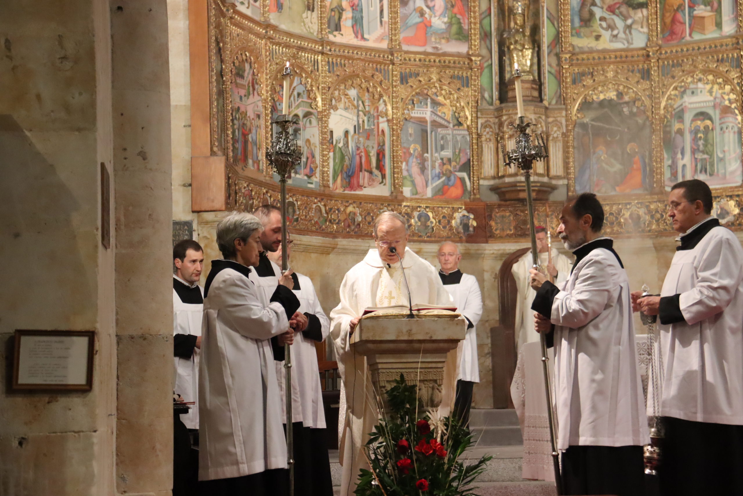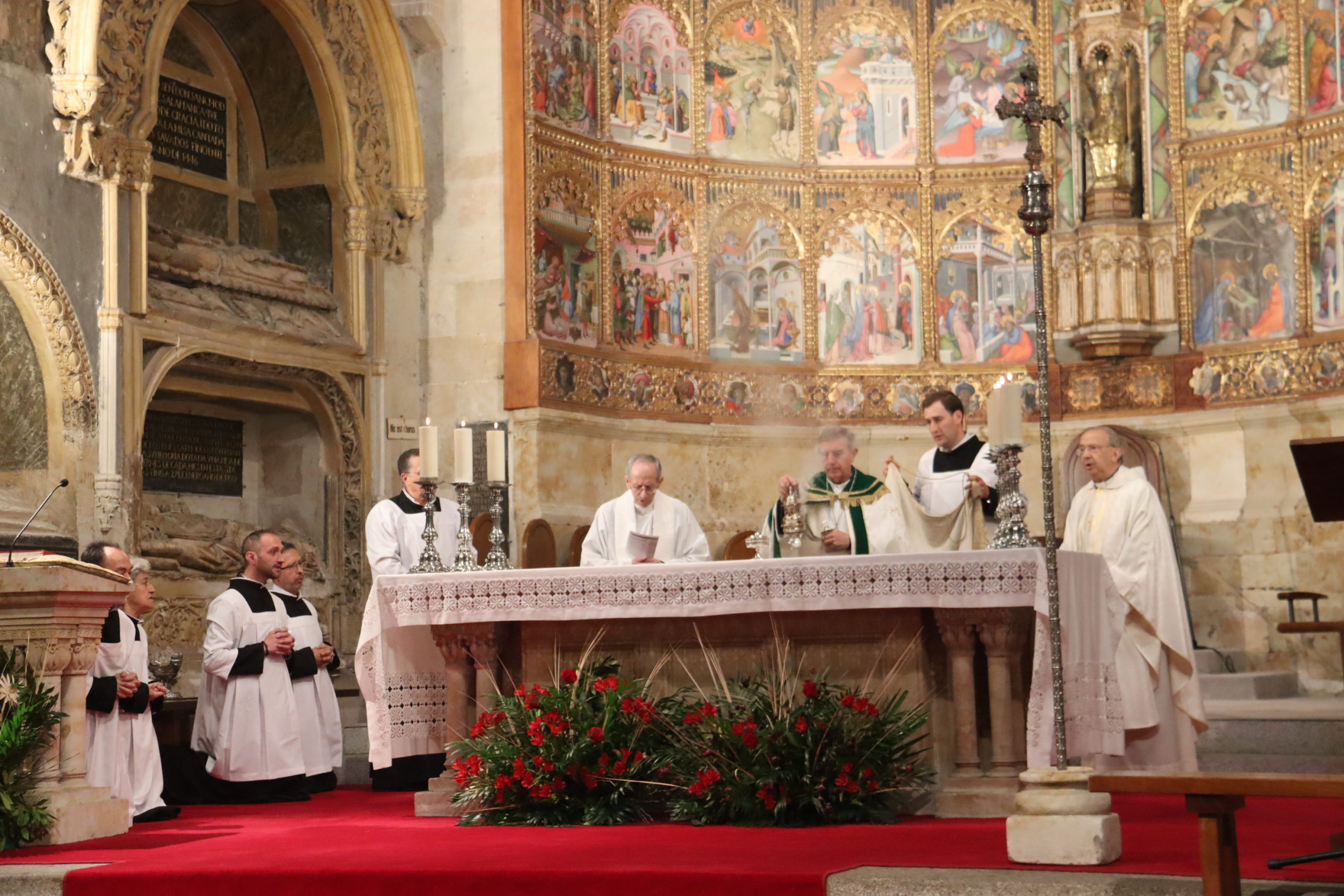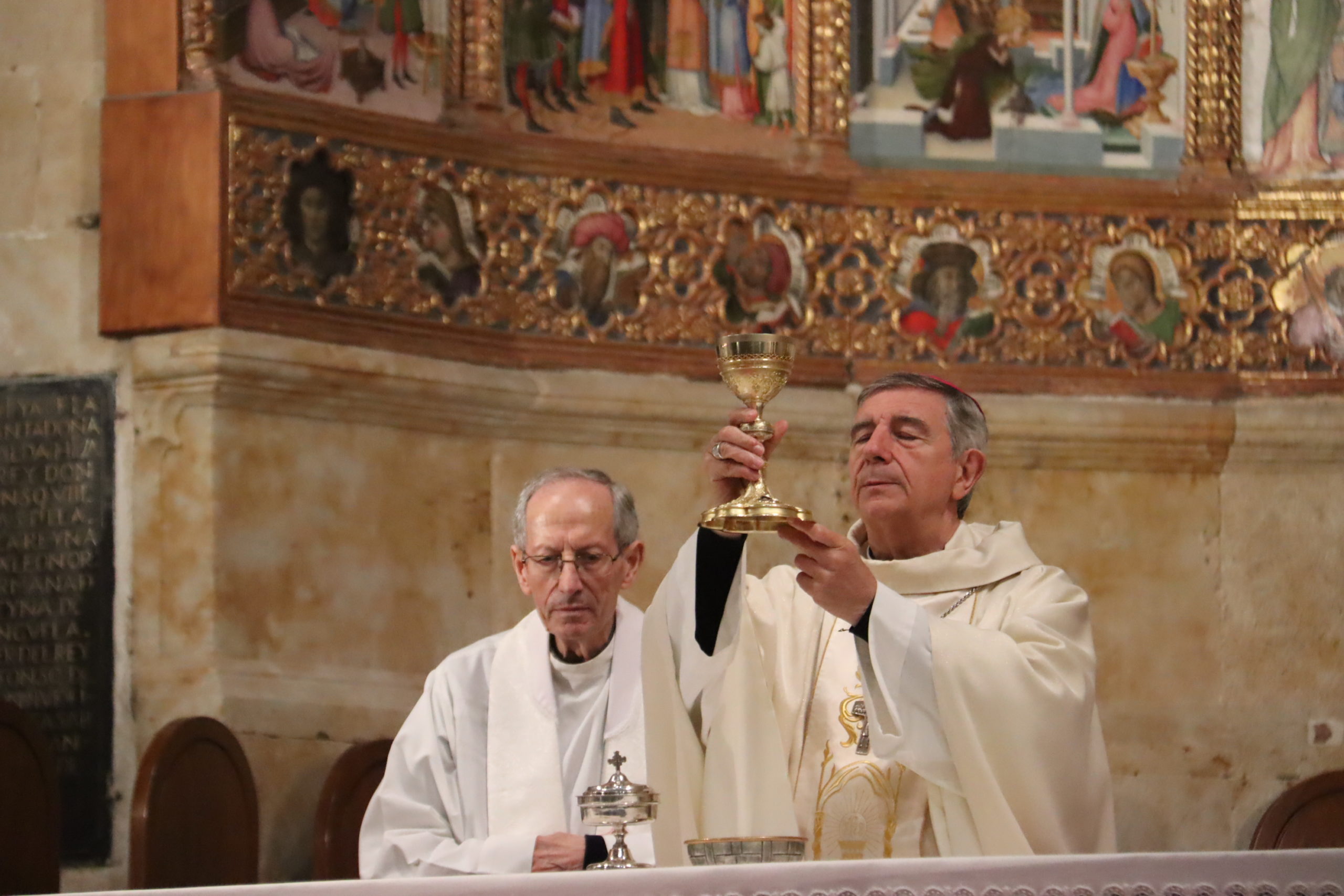 Después del lavatorio, dio comienzo la liturgia eucarística, en la que el pastor de la Diócesis de Salamanca ha evocado la cena pascual que Jesús compartió con sus discípulos. Tras la comunión, en un ambiente de profundo recogimiento, el obispo acompañado de los concelebrantes, los acólitos y la asamblea ha llevado la Eucaristía, procesionalmente y bajo palio, hasta la capilla de San José de la Catedral Nueva donde se ha instalado el altar para la reserva y la adoración.