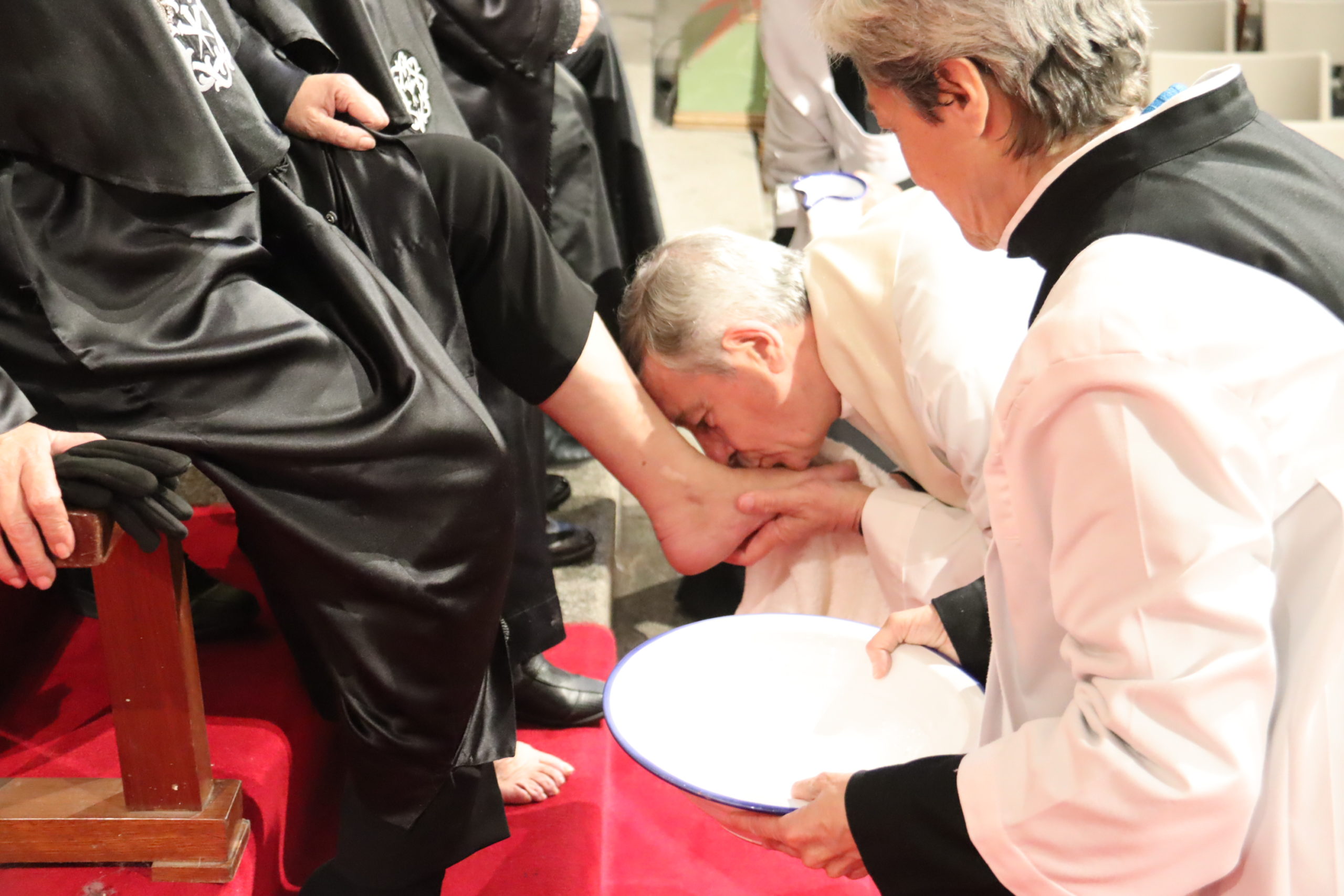 Mons. José Luis Retana recordaba que la liturgia del Jueves Santo está marcada por “la humildad y el servicio”, testimoniadas en el lavatorio de los pies. Un gesto que Jesús hizo a sus discípulos y que en aquella época era propio de los esclavos, como ha recordado: “Jesús lava como esclavo nuestros pies (…) para servirnos, para curarnos, para sanarnos, para limpiarnos” y que podamos así “sentir de nuevo su amor”.