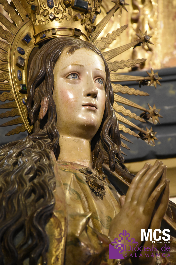 Ballesteros destaca de la imagen de la Virgen, la calidad y juventud de su rostro, “mirando más allá, penetrando en nuestro interior, en lo más profundo de nuestro corazón”, apunta. En cuanto al programa de actos, comienza hoy con la veneración y ofrenda floral a La Inmaculada Concepción, que se extenderá hasta el 8 de diciembre, cuya talla bajará por primera vez desde 2006 desde su hornacina del altar mayor.