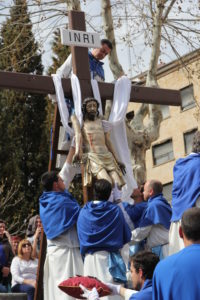 Su primer desfile procesional tiene lugar el Viernes de Dolores, con el via matris, los siete episodios principales en la vida dolorosa de la Virgen, sus siete dolores. “Procesiona la Virgen de los Dolores, de Felipe del Corral, y es una procesión popular, de una de los titulares que más devoción tiene en la cofradía, porque mucha gente pasa por aquí solo para verla”, detalla.