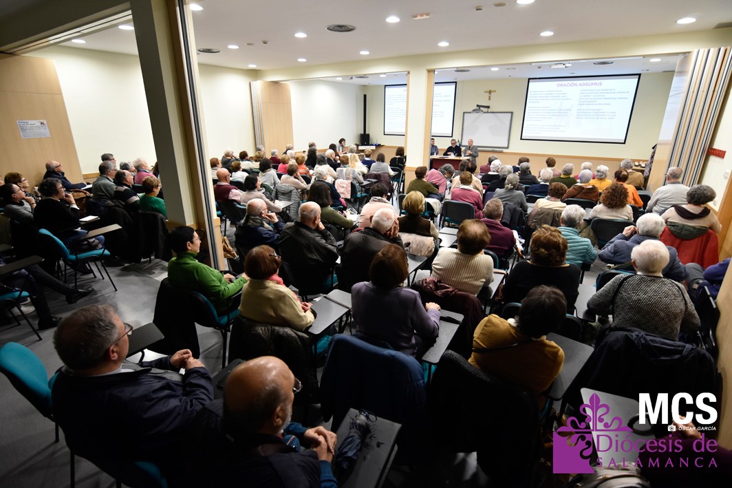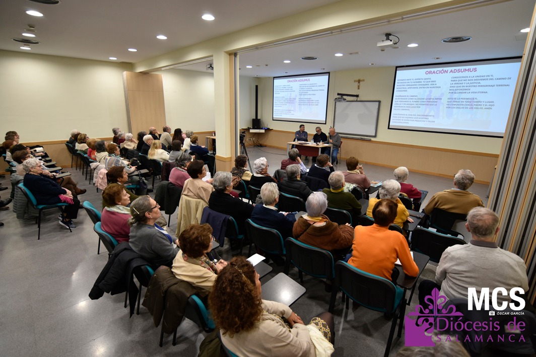 El vicario general de la Diócesis de Salamanca, Tomás Durán, fue el encargado de dar la bienvenida en nombre del obispo, y en relación al Sínodo, considera que, “puede ser un fermento para la humanidad, donde no hay mayorías ni minorías, ni polarizaciones, sino la integración y la escucha de todos”. Y tras rezar juntos la oración sinodal, Adsumus, comenzó la intervención del jesuita, Juan Antonio Guerrero, sobre el último libro que ha publicado junto a Óscar Martín: “Conversación espiritual, discernimiento y sinodalidad”.