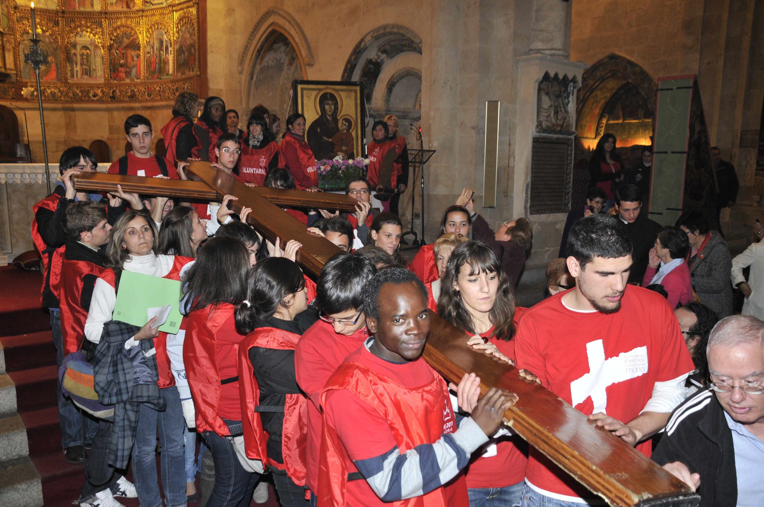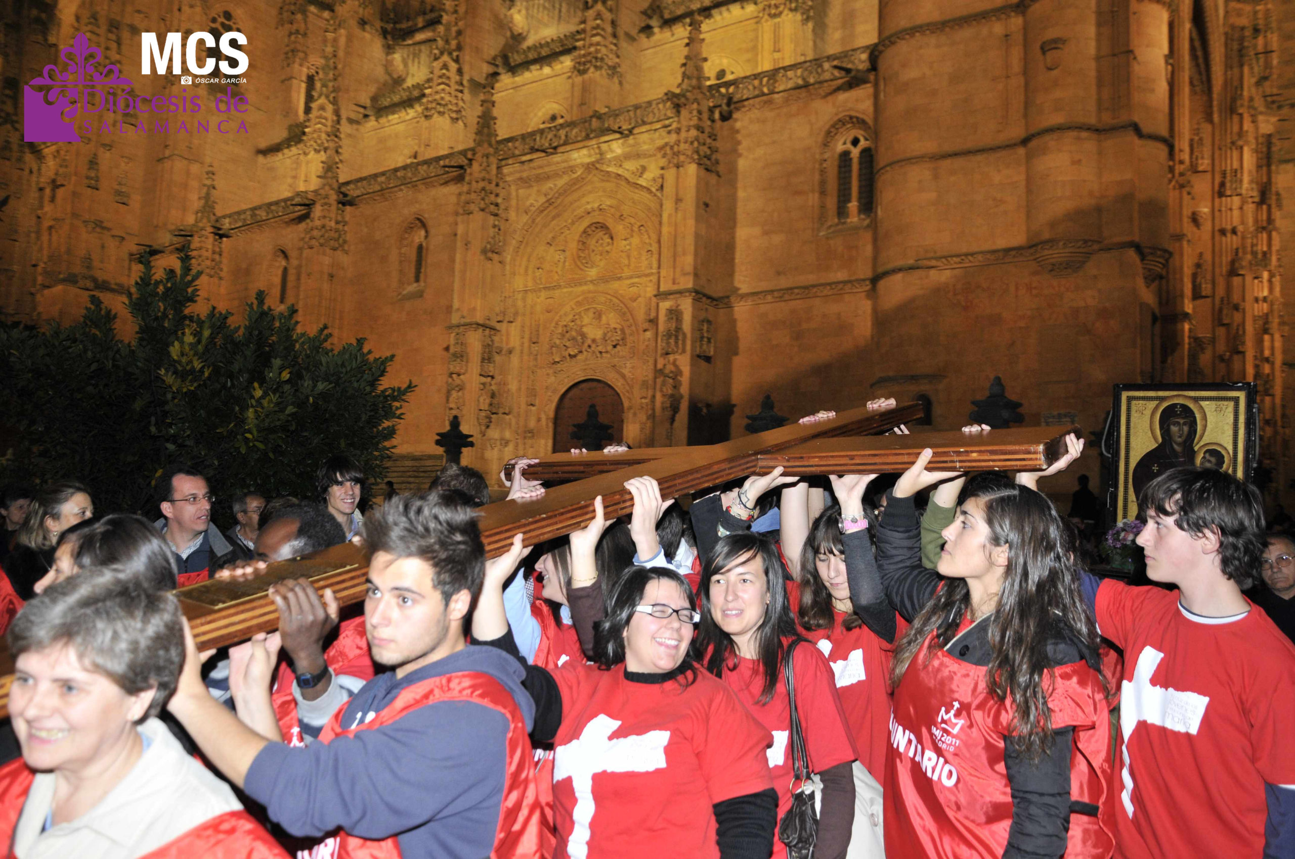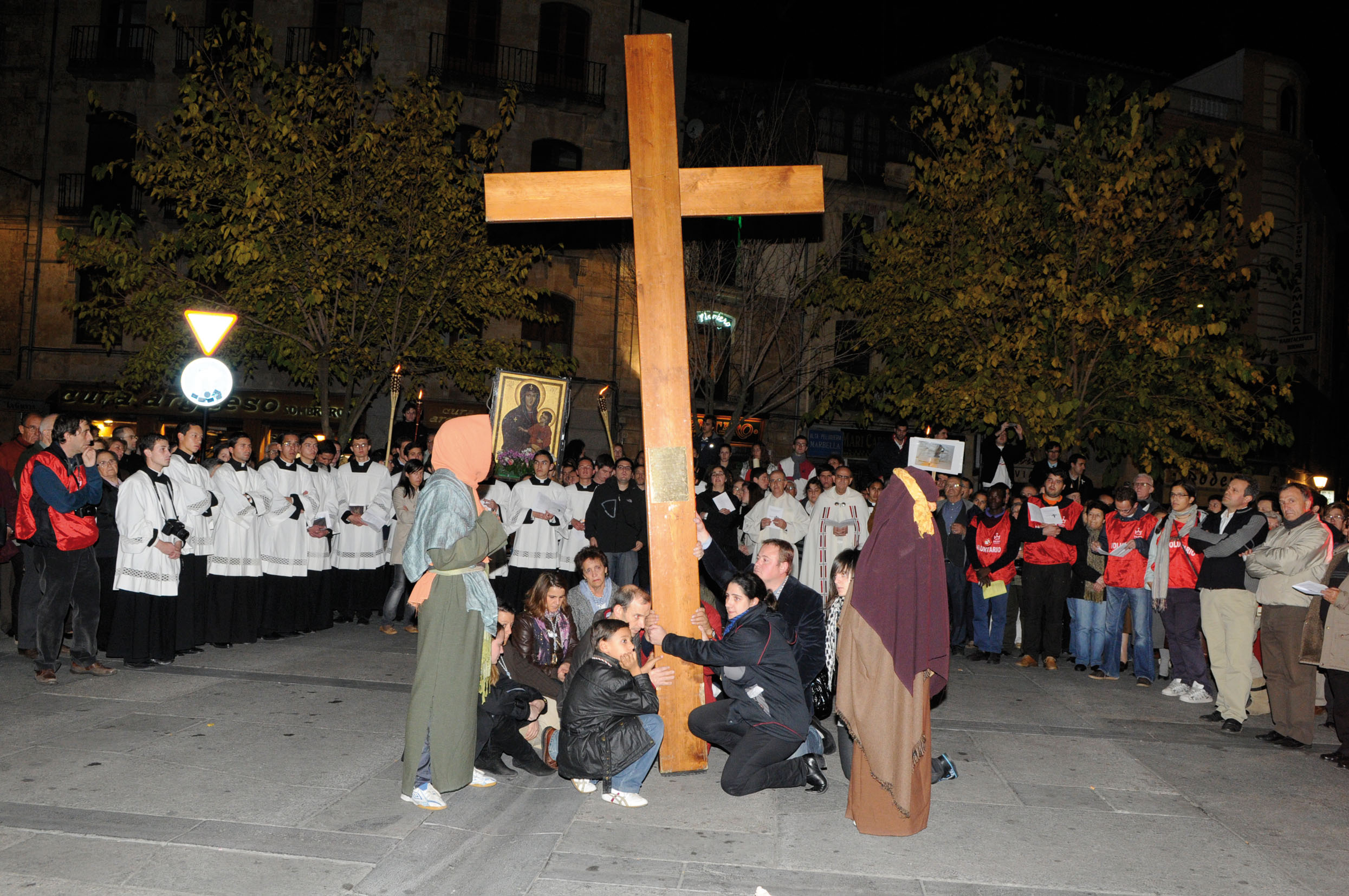La Cruz y el icono de la Virgen recorrieron las calles y plazas de Salamanca, visitaron diferentes templos y espacios públicos, donde las personas pudieron tocarlos y venerarlos. Un acontecimiento que se vivió “con gran intensidad religiosa; en clima de silencio y recogimiento” como recordaba el obispo de Salamanca, D. Carlos López, en una entrevista en la revista diocesana Comunidad. Fueron días “de intensa catequesis sobre el significado salvador de la Cruz de Jesús”, en los que se puso de manifiesto “que es posible el anuncio del Evangelio con alegría, en clima de fiesta, y sin disminuir en nada el misterio de la Cruz como revelación máxima del amor de Dios, que nos trae el seguimiento de Jesús sin reservas”, manifestó López.
