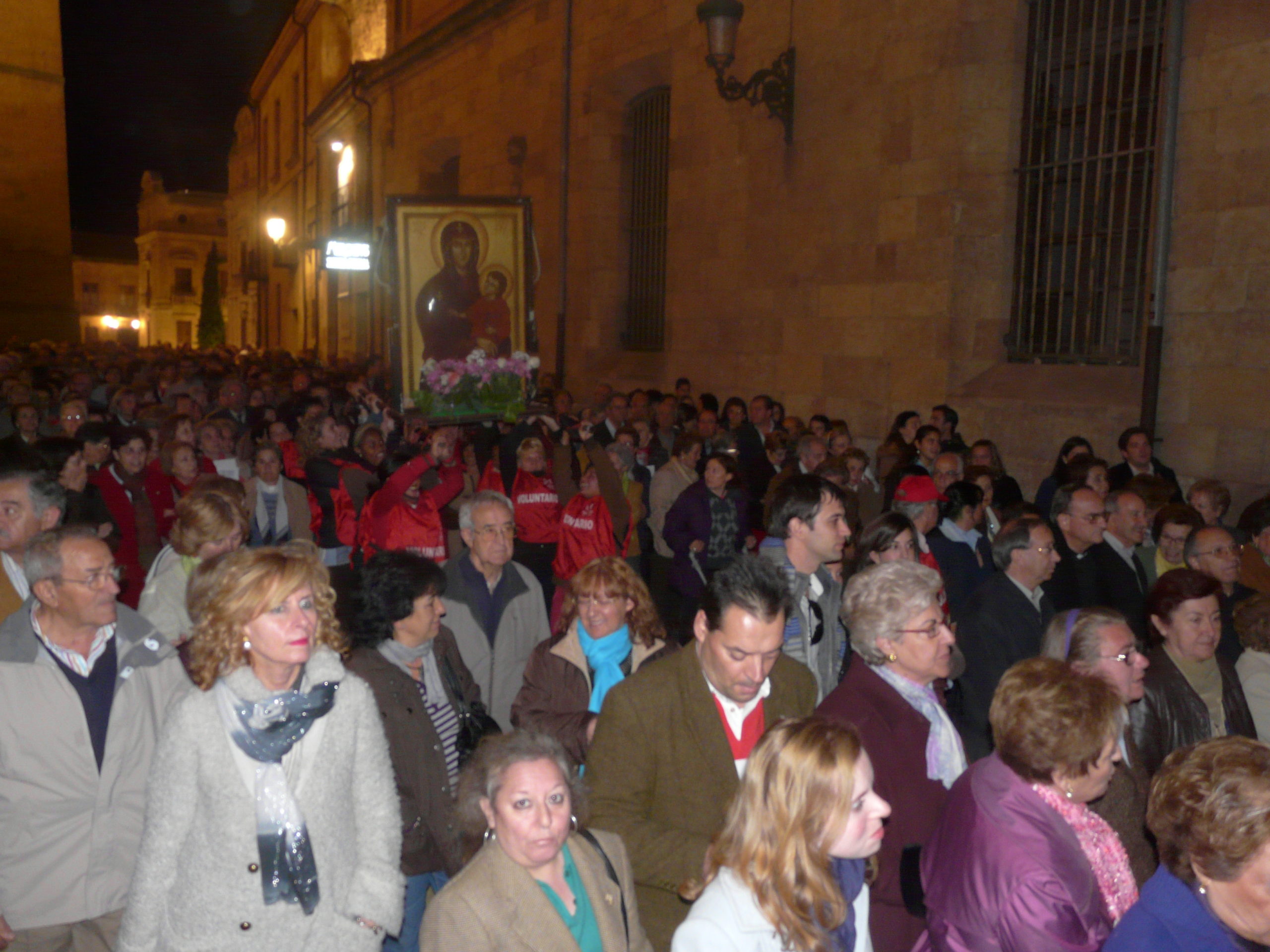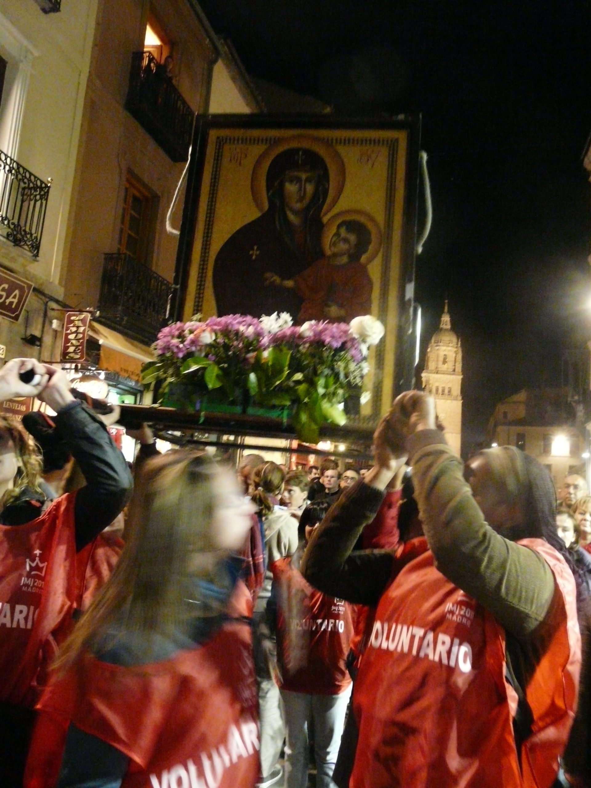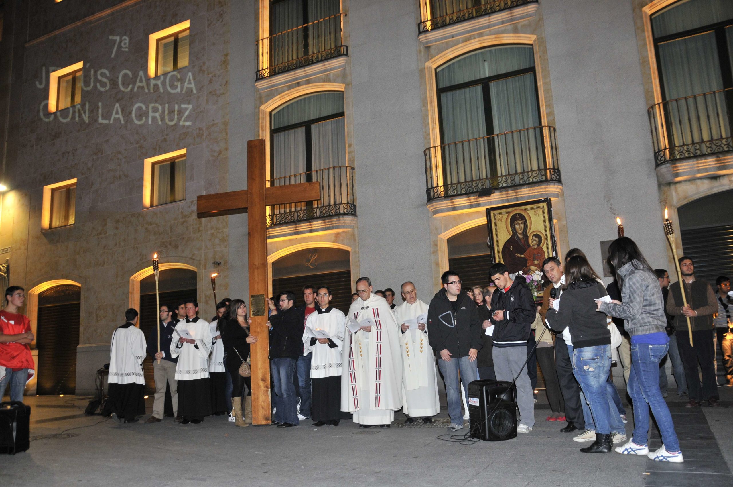 La Cruz y el icono de la Virgen recorrieron las calles y plazas de Salamanca, visitaron diferentes templos y espacios públicos, donde las personas pudieron tocarlos y venerarlos. Un acontecimiento que se vivió “con gran intensidad religiosa; en clima de silencio y recogimiento” como recordaba el obispo de Salamanca, D. Carlos López, en una entrevista en la revista diocesana Comunidad. Fueron días “de intensa catequesis sobre el significado salvador de la Cruz de Jesús”, en los que se puso de manifiesto “que es posible el anuncio del Evangelio con alegría, en clima de fiesta, y sin disminuir en nada el misterio de la Cruz como revelación máxima del amor de Dios, que nos trae el seguimiento de Jesús sin reservas”, manifestó López.