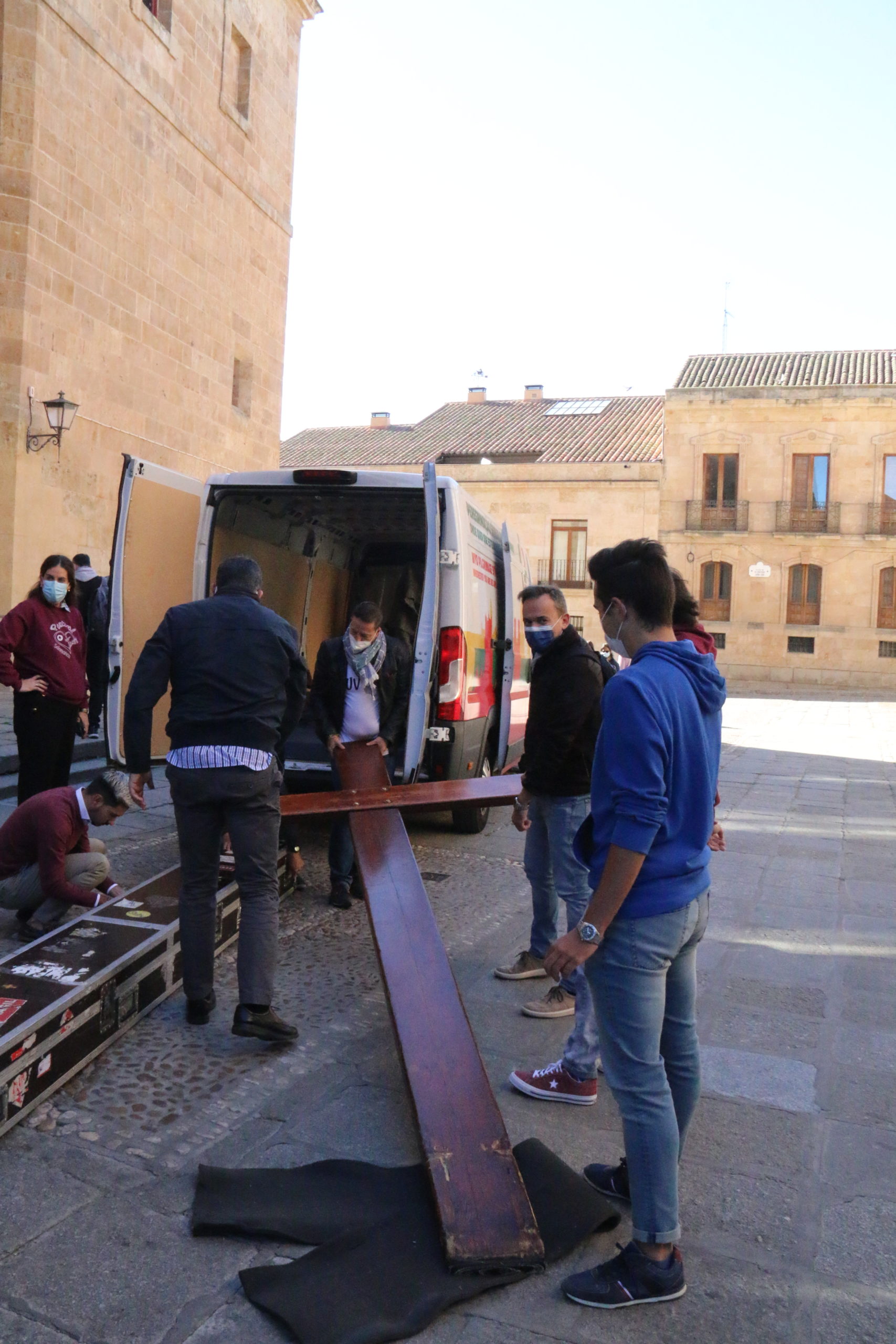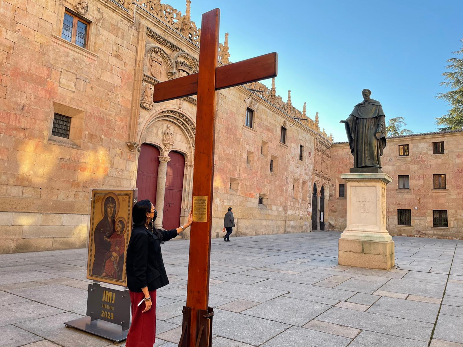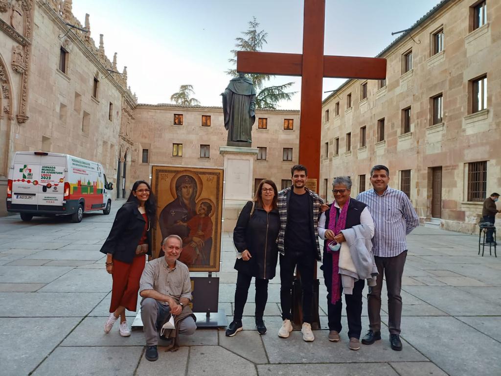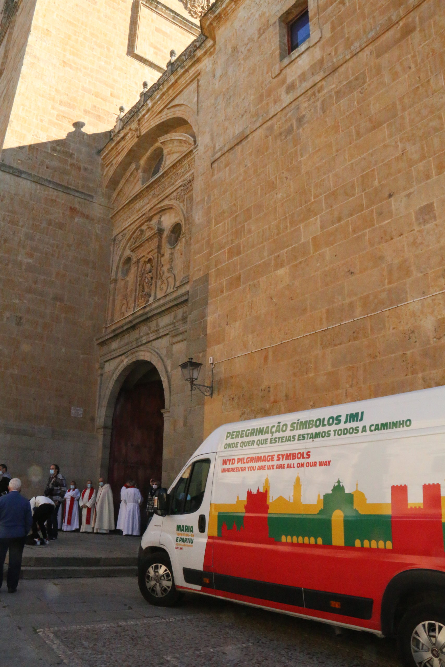 Los símbolos de la JMJ de Lisboa 2023 llegaron a Salamanca desde Plasencia, donde fueron a recogerlos los responsables de la Pastoral Universitaria y Juvenil, junto a dos jóvenes de la diócesis. La furgoneta donde viaja la Cruz de los jóvenes y el icono de Madrid recorre España desde hace unas semanas, y donde se puede leer en uno de sus laterales su lema: “Donde quiera que estés, todos estamos en camino”.