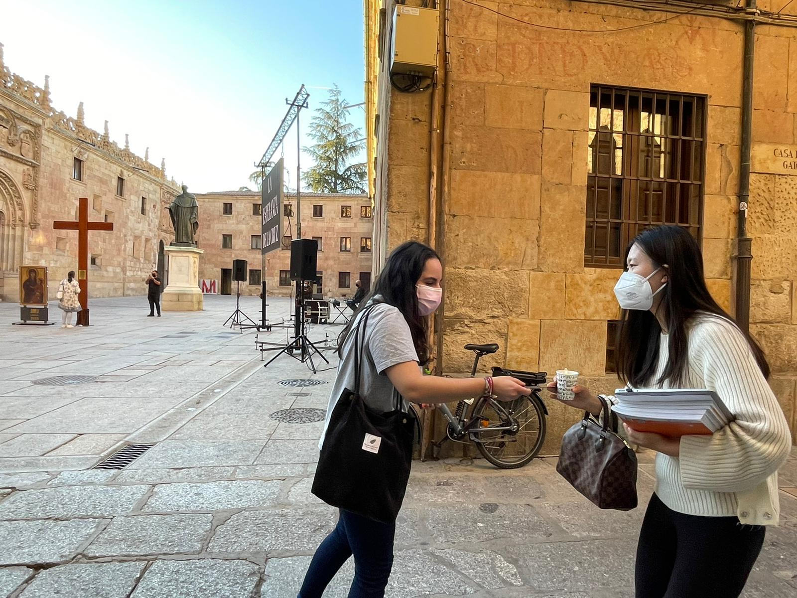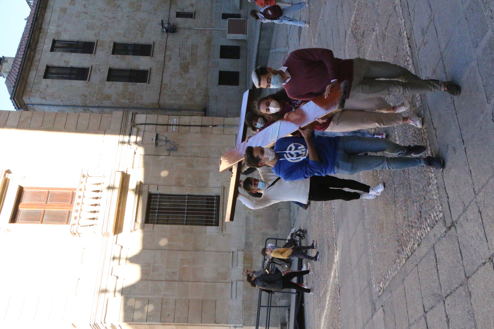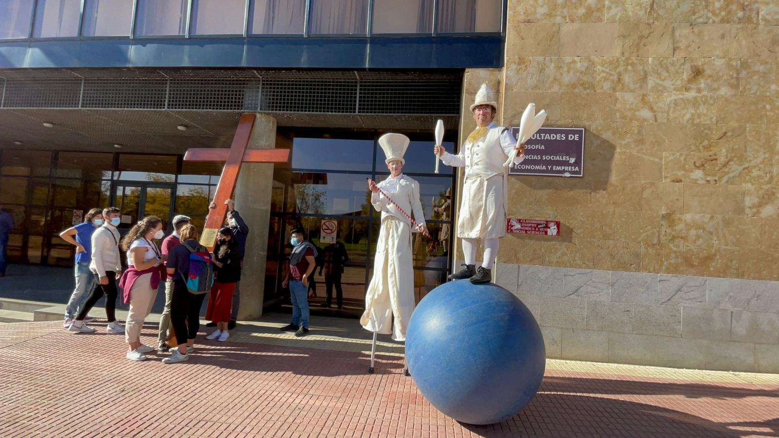 La siguiente parada de los símbolos de la JMJ de Lisboa fue el campus universitario Miguel de Unamuno, donde los jóvenes de la diócesis se marcaron un itinerario con seis estaciones que representaban las “Encrucijadas de la vida universitaria”. En cada parada, escucharon las palabras de Jesús y acogieron el envío misionero que el Papa Francisco ofrece en su mensaje: “Levántate y da testimonio”. Junto a los jóvenes, durante el recorrido estuvieron presentes dos artistas con animación de calle y malabares. En el campus hicieron parada en la Casa del Estudiante, la Facultad de Filosofía, Educación y Sociología, Biología, Derecho y Medicina.
