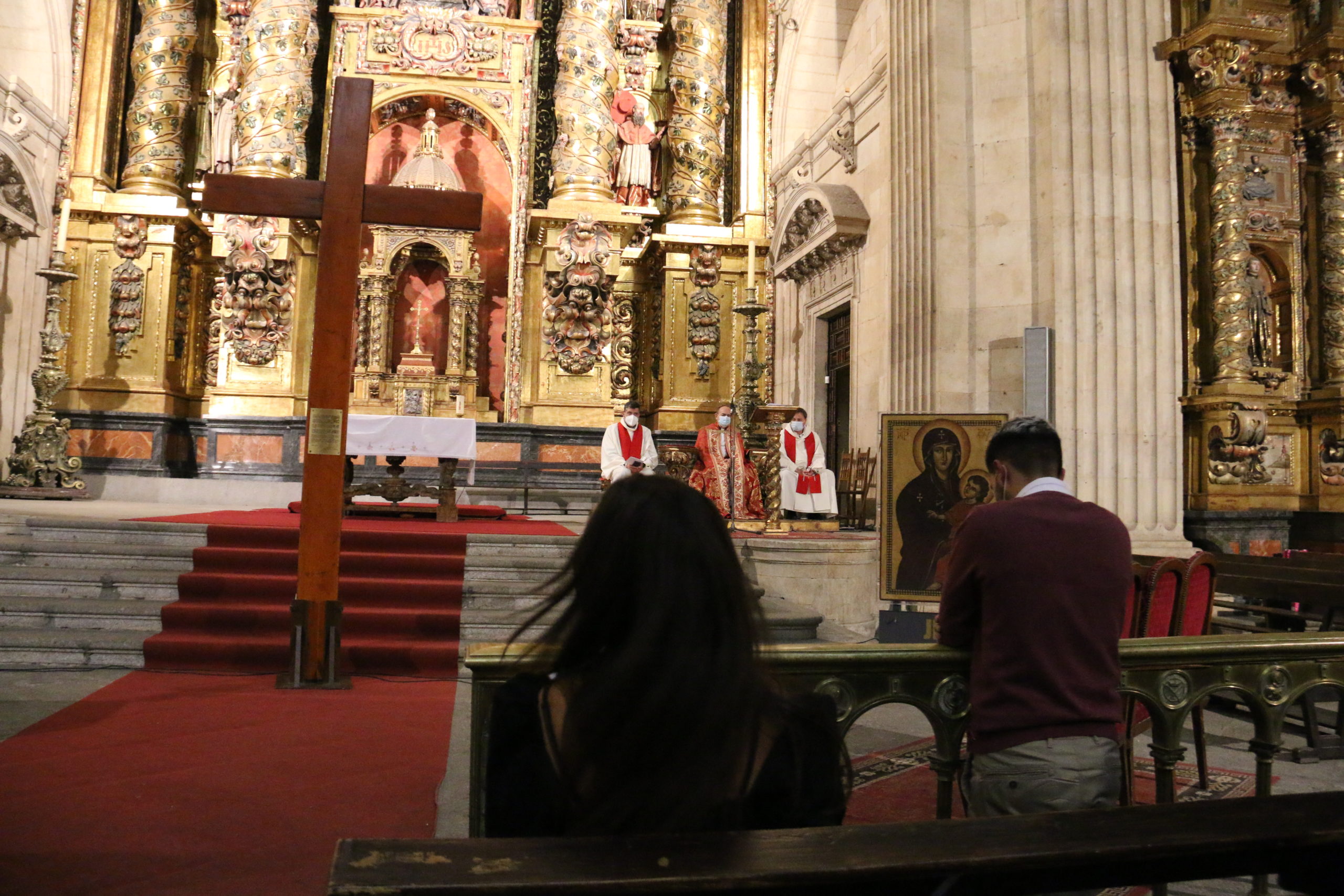 Durante la celebración se proyectó un vídeo sobre “La fuerza de la Cruz”, y tras la liturgia de la Palabra, tuvo lugar la adoración de la Cruz. El coro diocesano fue el responsable de la animación con sus canciones en determinados momentos. En su homilía, el obispo recordó que hemos reconocido el amor que Dios nos tiene, “y nos ha manifestado en su Hijo”. Y centro su discurso en la Cruz y toda su simbología: “El tesoro de la Cruz es el tesoro de Cristo muerto y resucitado, que se hace realidad en nuestra vida a través de regeneración bautismal, nacidos del agua y del espíritu”, apuntó.