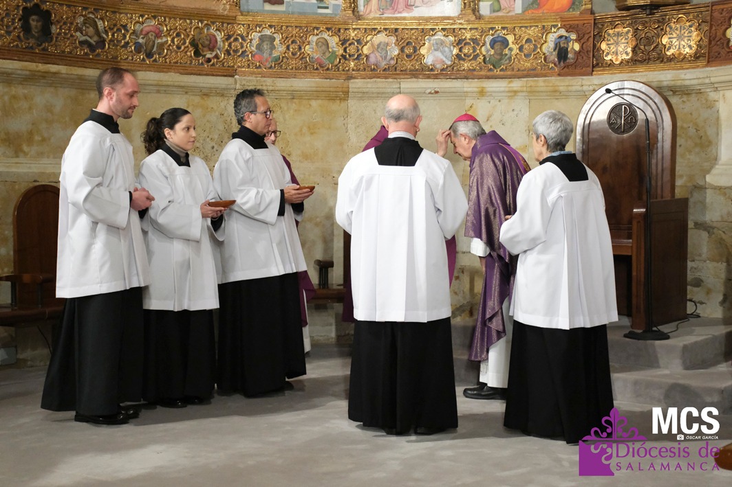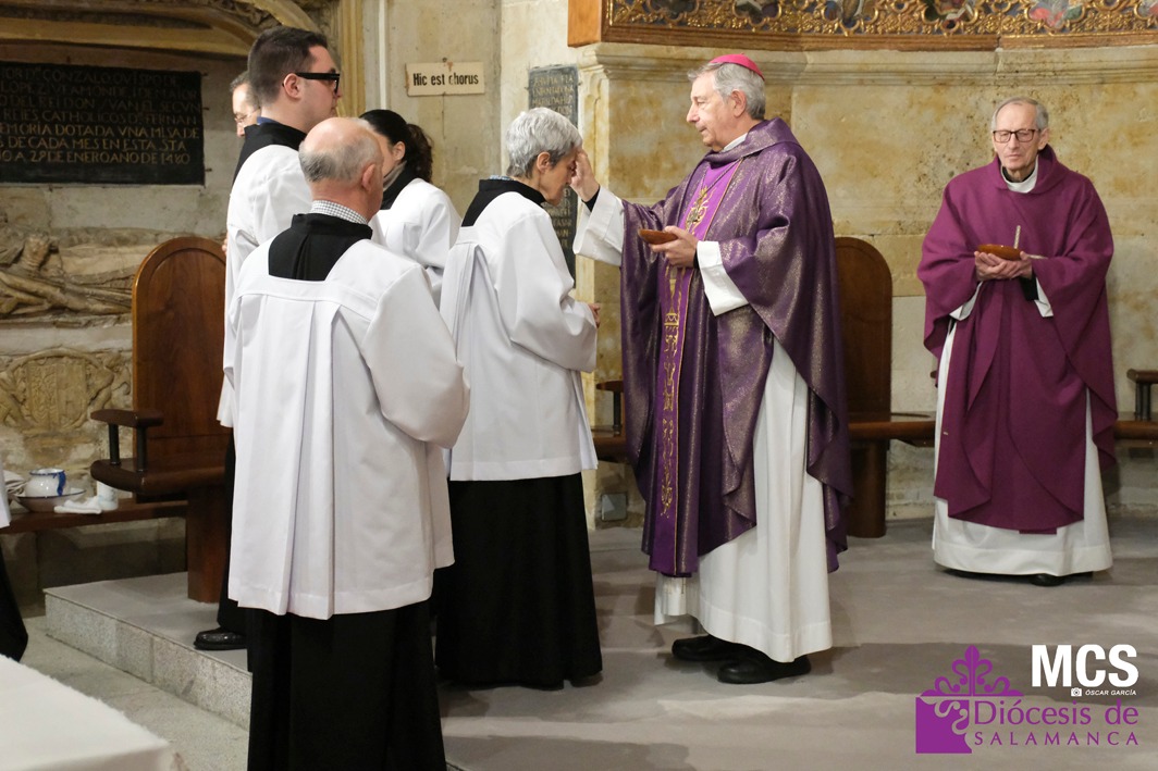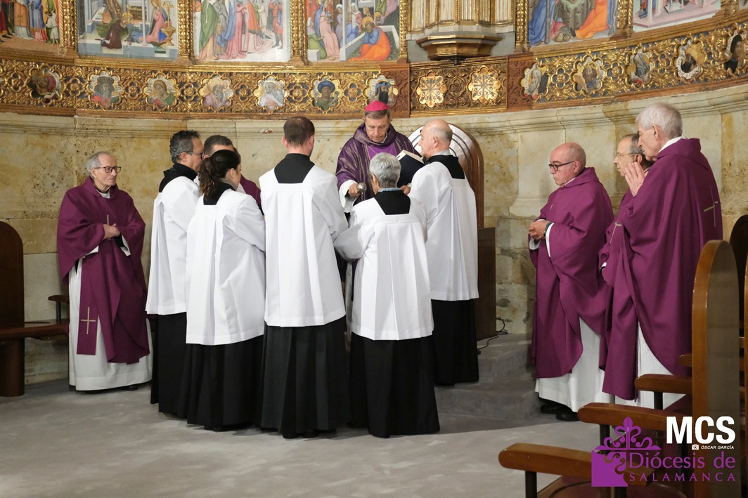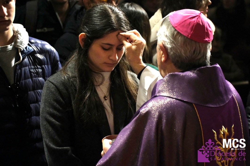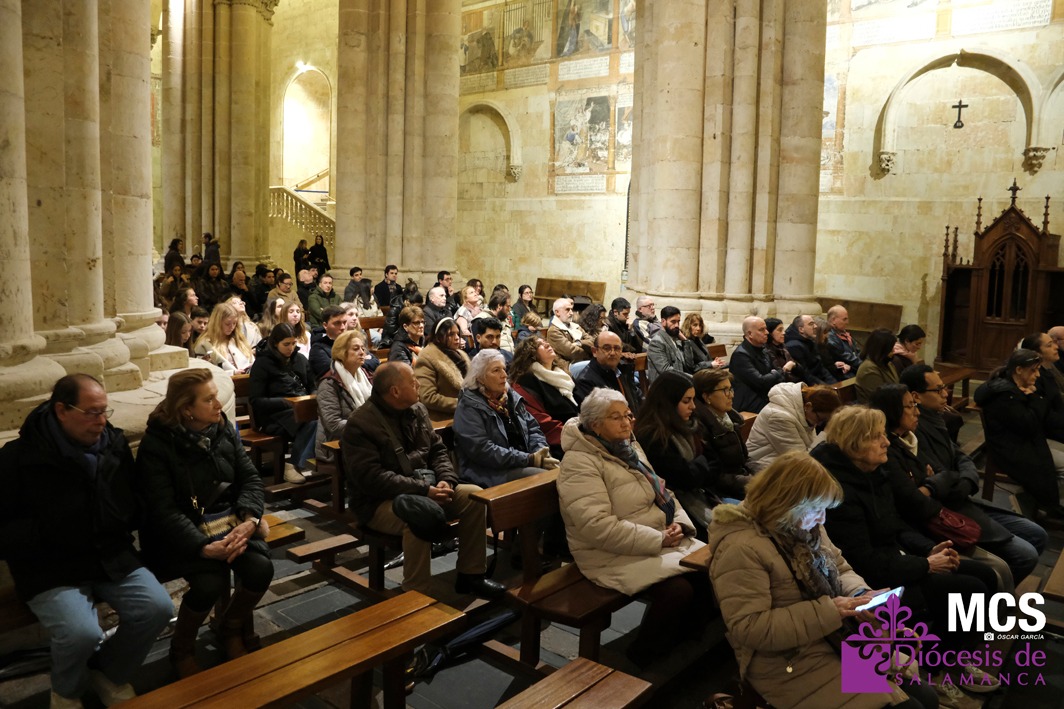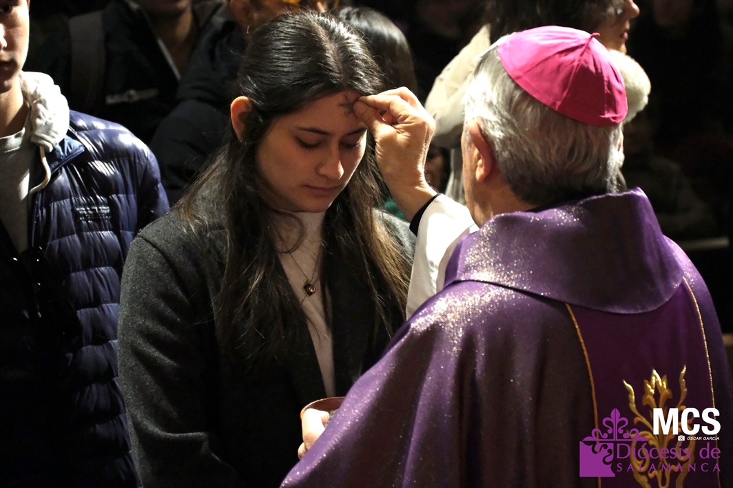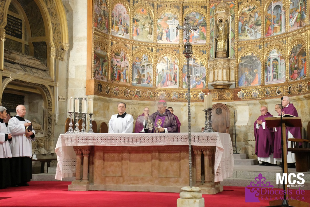 La Catedral vieja de Salamanca acogió la celebración del Miércoles de Ceniza, presidida por el obispo, Mons. José Luis Retana, concelebrada por el deán y varios canónigos del Cabildo. Numerosos fieles participaron en la eucaristía, entre ellos muchos jóvenes, con el acompañamiento musical del Coro de la Catedral.