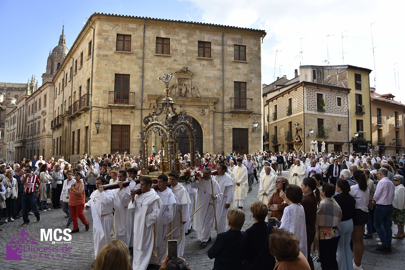 El recorrido se iniciará en la Catedral, con la salida del cortejo procesional y la custodia eucarística por la Puerta del Obispo, que recorrerá las calles: Calderón de la Barca, Libreros, plaza de San Isidro, Compañía, Meléndez, plaza del Corrillo, Rúa y plaza de Anaya, donde el obispo impartirá a los fieles la bendición con el Santísimo desde el atrio de la Catedral Nueva.