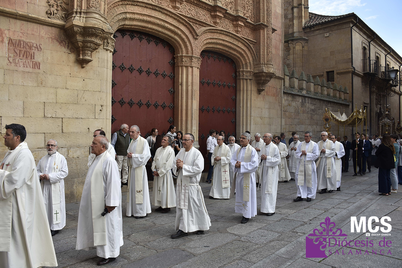 En Salamanca, esta festividad se celebrará solemnemente en la Catedral Nueva, donde el obispo de la diócesis, Mons. José Luis Retana, presidirá la eucaristía del Corpus Christi a las 18:00 horas, concelebrada por el presbiterio diocesano. La celebración concluirá con la procesión con Jesús Sacramentado que recorrerá las calles de la capital y la bendición en el atrio de la Catedral.