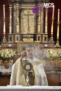 La procesión con el Santísimo es una manifestación pública de fe y adoración a la Eucaristía, que destaca la presencia real del Cristo entre su pueblo. Encabezada por la cruz guía, los ciriales y el incensario, el cortejo procesional incluirá a fieles de las parroquias no adscritos a ningún movimiento o asociación diocesana. A continuación, se situarán los jóvenes de Pastoral Universitaria, seguidos por los movimientos diocesanos, las cofradías y hermandades, tanto de gloria como de penitencia, las asociaciones eucarísticas, los seminaristas, miembros de Institutos Seculares, religiosos y religiosas.
