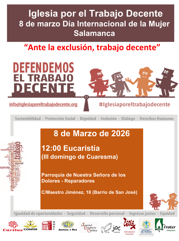 El 8 de marzo se incorporó desde 2023 a las prioridades de la iniciativa Iglesia por el Trabajo Decente, que reúne a diversas organizaciones de inspiración cristiana comprometidas con la defensa de la dignidad del trabajo.