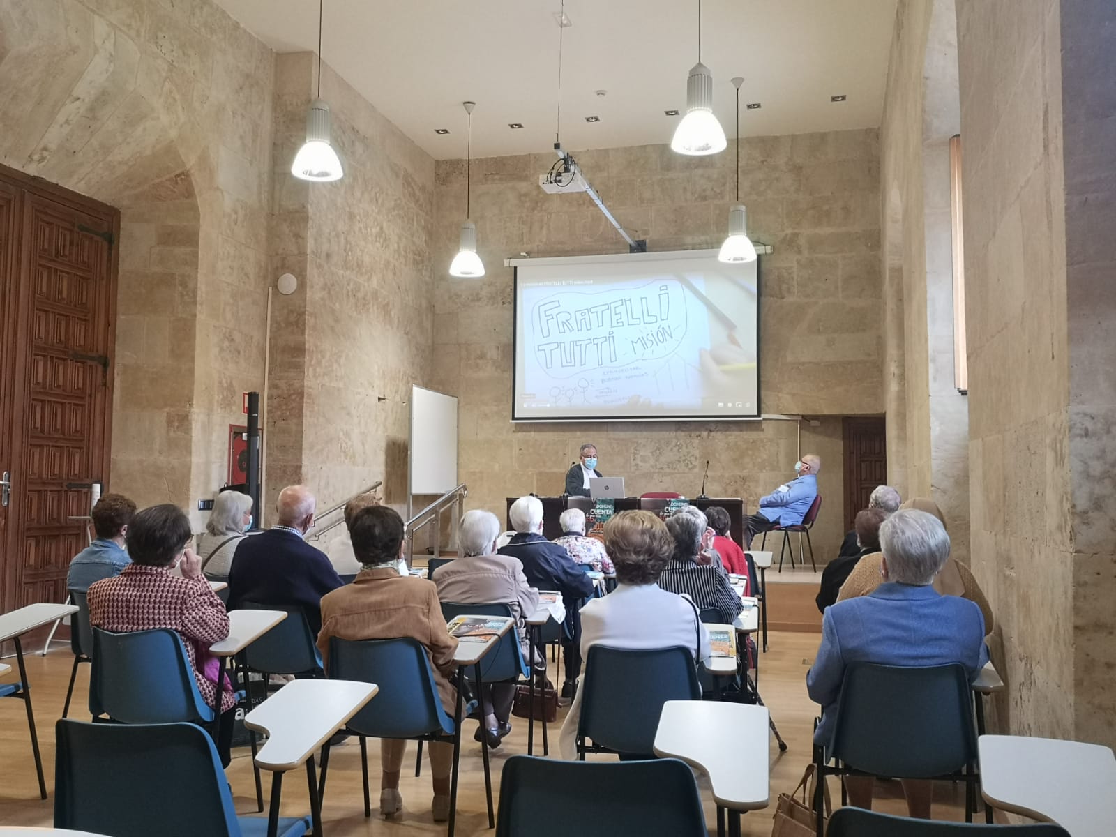 El Servicio diocesano de Misiones inauguró sus actividades del Octubre Misionero el pasado 2 de octubre, con un encuentro de voluntarios y colaboradores de Misiones en la Casa de la Iglesia, en el que se presentó la encíclica, “Fratelli Tutti”, y el calendario de actividades organizado por la OMP Salamanca para este curso. La reunión sirvió también para rendir un cálido homenaje al sacerdote, Juan Robles Diosdado, que ha estado al frente de OMP Salamanca durante 31 años. El encuentro concluyó con una eucaristía de acción de gracias que fue presidida por el homenajeado.