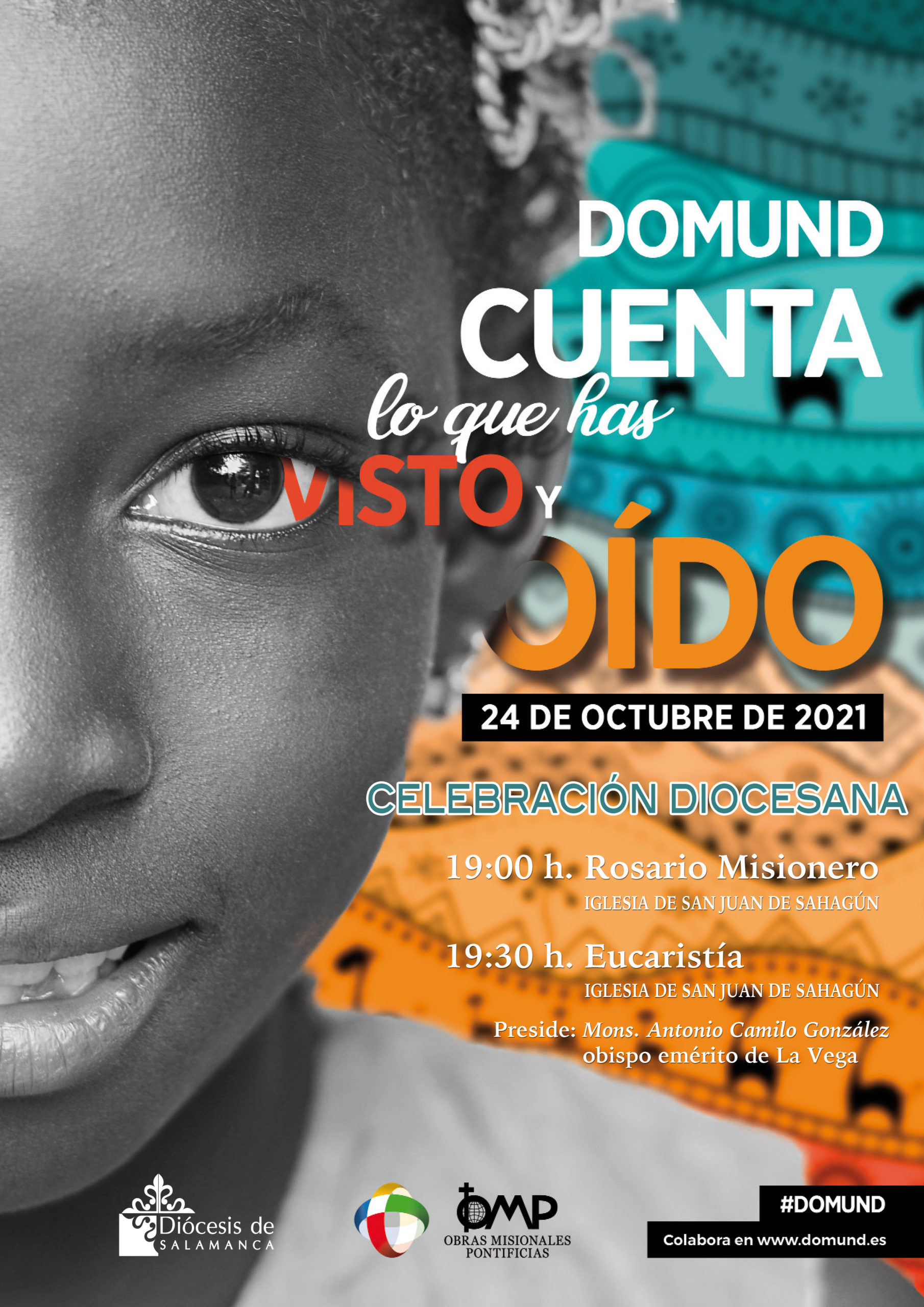 La jornada diocesana del Domund tendrá lugar este año en la iglesia de San Juan de Sahagún, y se iniciará con el rezo del Rosario Misionero, a las 19:00 horas, seguido de la eucaristía, a las 19:30 horas, que será presidida por el obispo emérito de La Vega (República Dominicana), Antonio Camilo González. La colecta de este día en todas las parroquias de la Diócesis de Salamanca irá destinada a apoyar a las misiones.