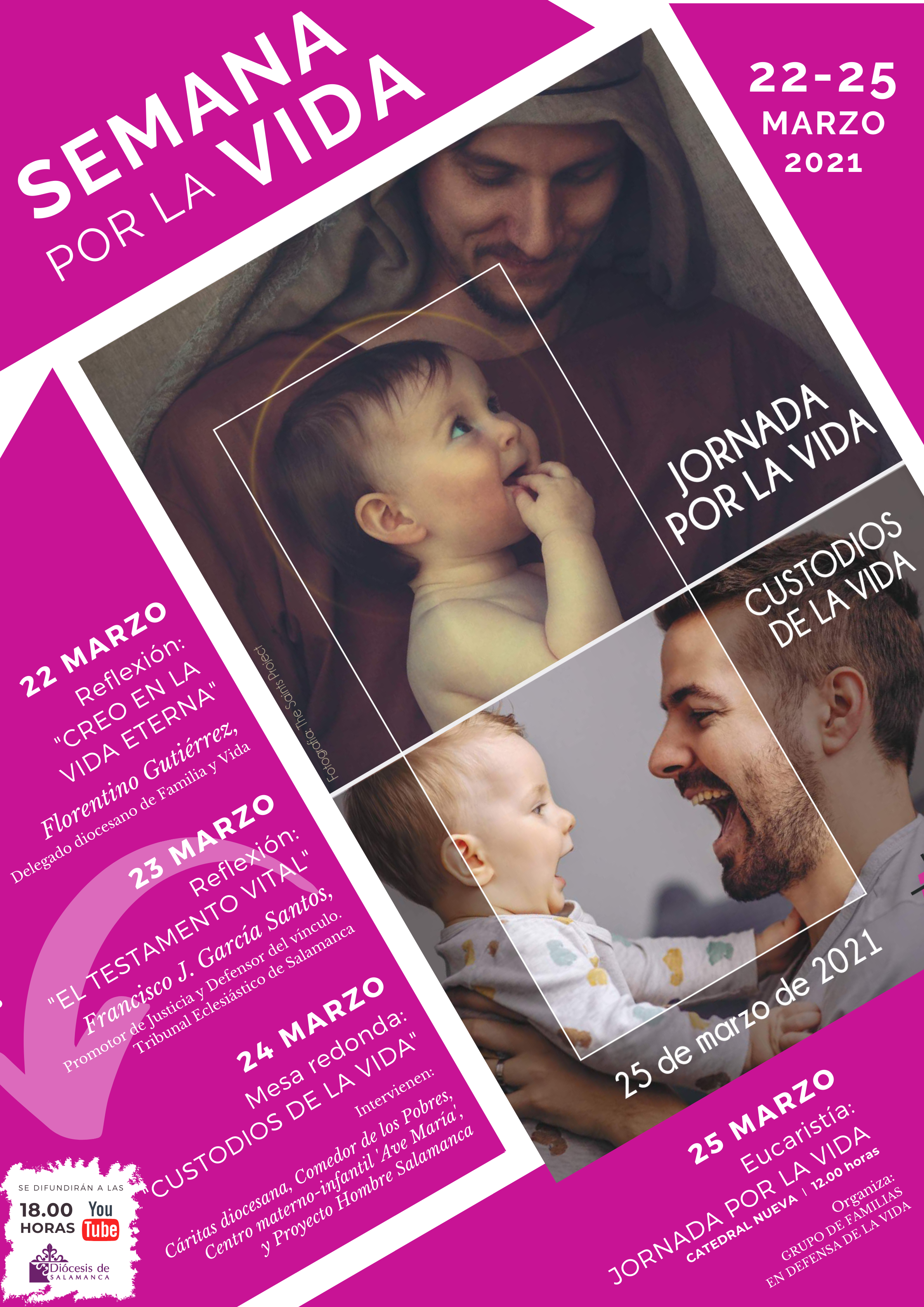 Ante la celebración la Jornada por la Vida, la Delegación diocesana de Familia y Vida de Salamanca celebrará del 22 al 25 de marzo, una “Semana por la vida”, que contempla dos ponencias, una mesa redonda y una eucaristía que se difundirán todos los días, a las 18:00 horas, a través del canal de Youtube de la Diócesis de Salamanca.