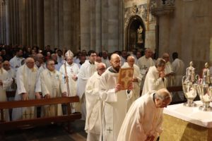 La Diócesis de Salamanca celebrará el próximo miércoles 16 de abril, Miércoles Santo, la Misa Crismal a las 12:00 horas en la Catedral Vieja. Esta eucaristía, presidida por el obispo, Mons. José Luis Retana, y concelebrada por el presbiterio diocesano, se enmarca dentro de los actos litúrgicos previos al Triduo Pascual. En ella se expresa la comunión entre el obispo y los sacerdotes, y todo el Pueblo de Dios, que por el Bautismo participa del sacerdocio de Cristo y de la misión de la Iglesia. Como destaca el vicario general, Tomás Durán, esta misa es una “fiesta del sacerdocio de Cristo, de la fraternidad sacerdotal y del sacerdocio común de los fieles”. Por ello, invita a participar a toda la comunidad diocesana (sacerdotes, laicos y vida consagrada) en esta celebración.