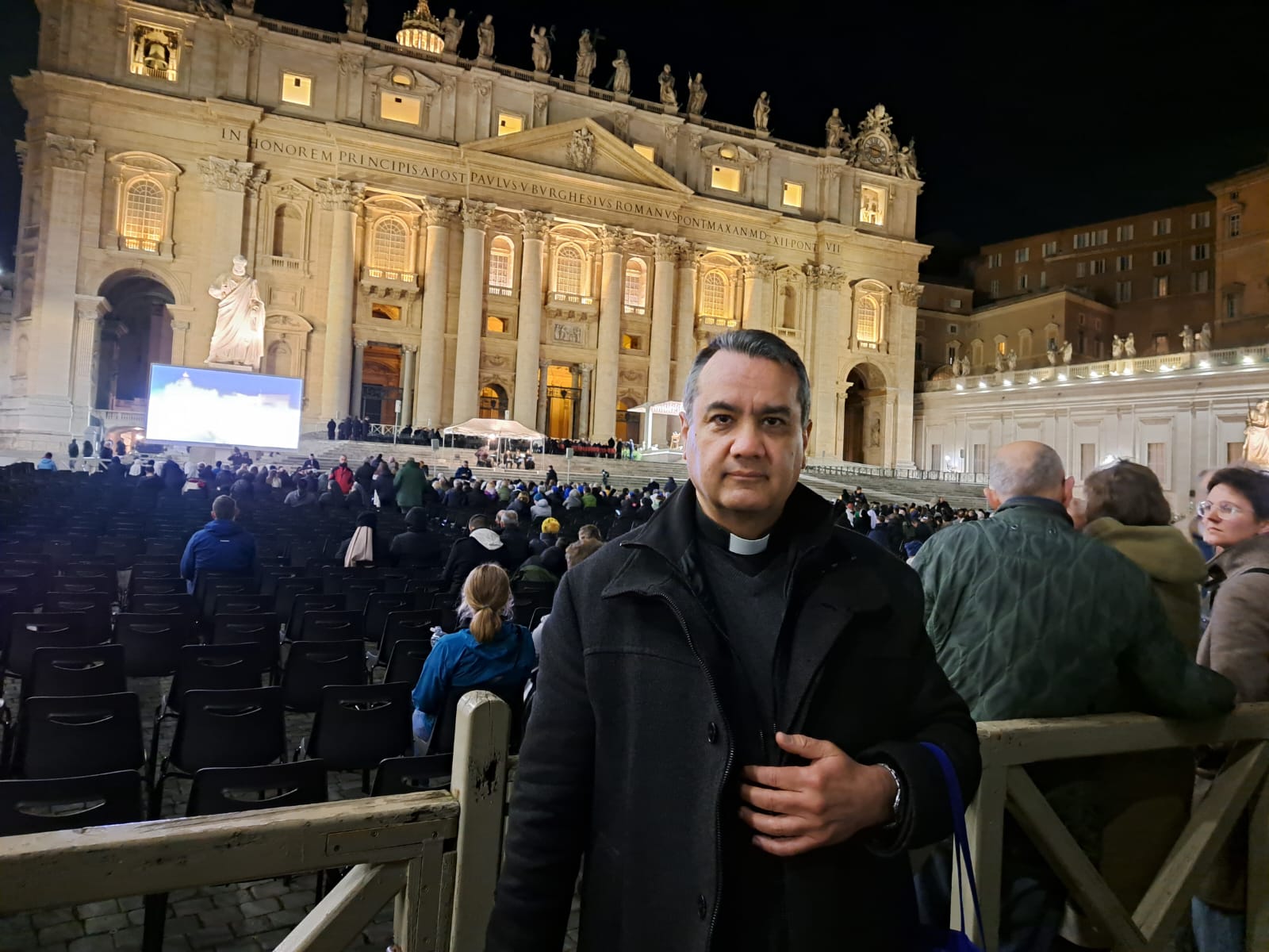 El delegado diocesano de Liturgia, Emilio Vicente de Paz, quien en estos días se encuentra en Roma asistiendo a un curso de formación litúrgica, participó el jueves en la oración del Rosario en la Plaza de San Pedro. Emilio describe ese momento como una profunda experiencia de unidad eclesial. “Además de ser un momento de oración, en actitud suplicante por la salud del papa, sobre todo he sentido con fuerza la unidad de la Iglesia, al ver a personas de distintas razas y naciones a mi alrededor. También de distintos estados de vida: sacerdotes, religiosas, laicos,… Todos teniendo en mente al papa Francisco, enfermo, por un lado, y por otro, a Aquel a quien dirigíamos nuestra oración, el Señor, con la Virgen María como intercesora”.