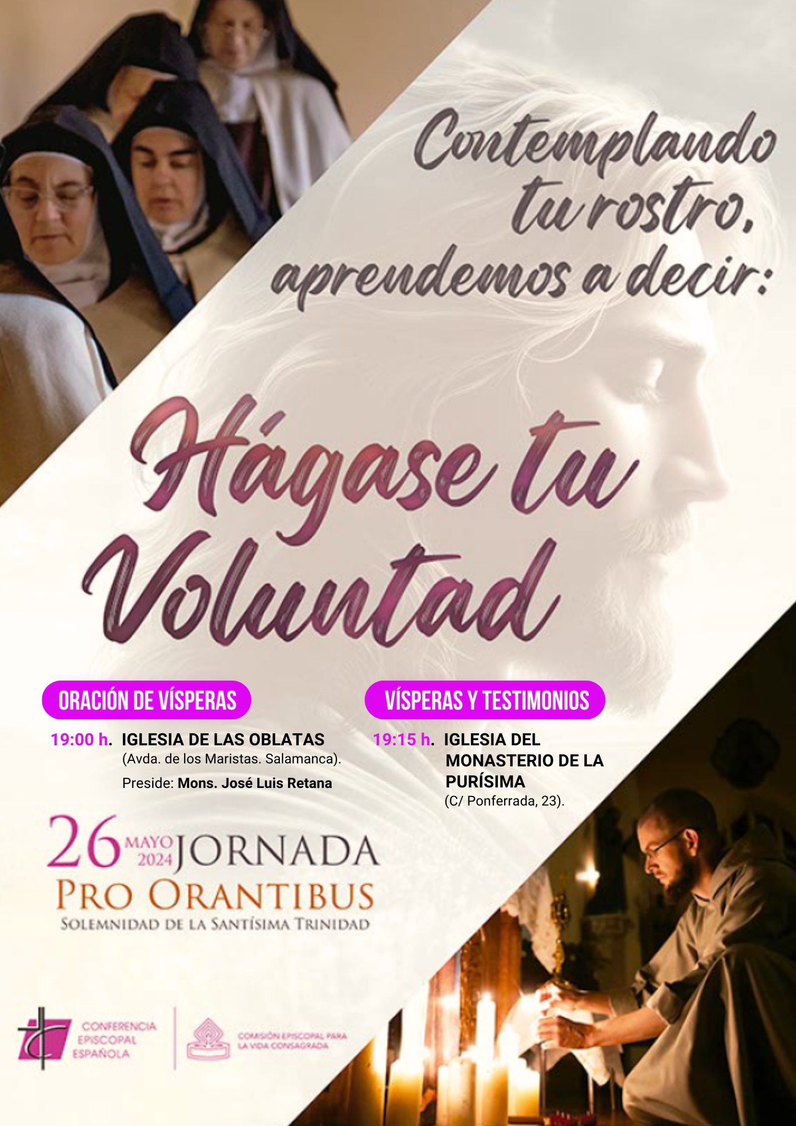 “Contemplando tu rostro aprendemos a decir: ¡Hágase tu voluntad!”, es el lema de la Jornada Pro Orantibus que la Iglesia celebra este domingo, 26 de mayo, en la solemnidad de la Santísima Trinidad. Esta jornada está dedicada a reconocer, agradecer y orar en comunión por aquellos “que son el verdadero corazón de toda la Iglesia y de nuestra Diócesis de Salamanca en particular”, los contemplativos. Así lo señala el obispo Mons. José Luis Retana en una carta dirigida a las comunidades de religiosos y religiosas, donde subraya la importancia de este día.