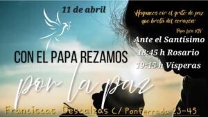 El encuentro incluirá el rezo del Santo Rosario y la celebración de vísperas a las 19:25 horas, uniéndose así a la petición del Papa por la paz en el mundo.