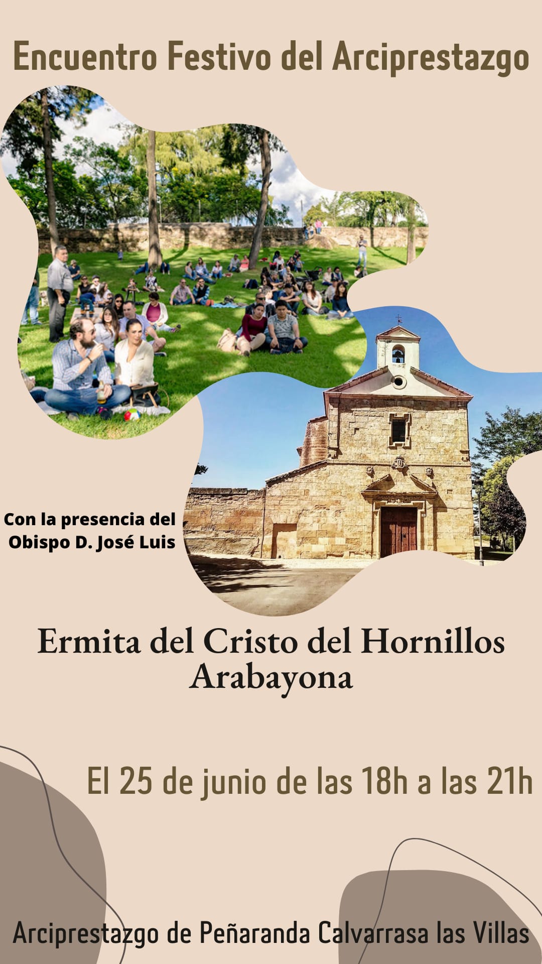 El arciprestazgo de Peñaranda-Calvarrasa-Las Villas ha organizado un encuentro festivo de fin de curso en la ermita del Cristo de Hornillos, en Arabayona de Mógica, que contará con la presencia del pastor diocesano, Mons. José Luis Retana. Esta jornada de convivencia, a la que están convocados a participar los fieles de las 46 parroquias que lo integran, tendrá lugar el domingo, 25 de junio, de 18:00 a 21:00 horas.