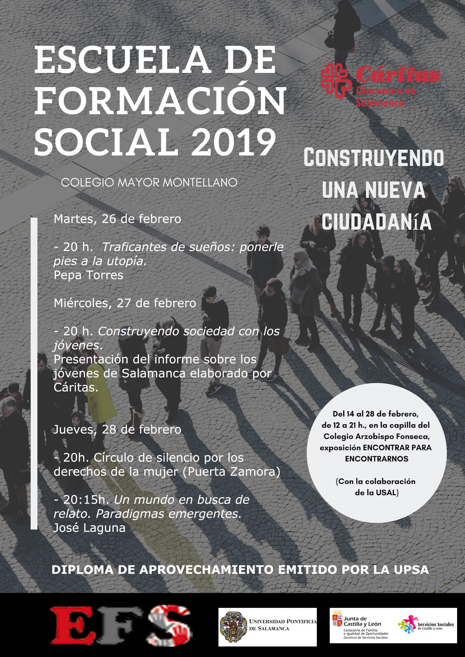 Como novedad, este año, la Universidad Pontificia de Salamanca (UPSA) se une a la Escuela de Formación Social y expedirá un diploma de aprovechamiento a través del Instituto de Ciencias de la Educación.