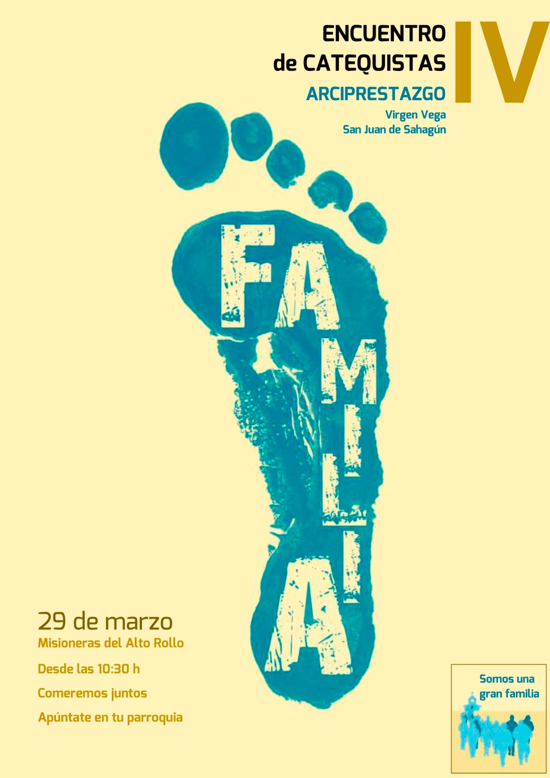 El pasado sábado, 29 de marzo, la Casa de espiritualidad de las Misioneras del Alto del Rollo acogió el IV Encuentro de Catequistas del Arciprestazgo Virgen de la Vega-San Juan de Sahagún. Bajo el símbolo de una huella, que expresa el deseo de “dejar una marca con los pasos que vamos dando juntos” como señala su arcipreste, Juan Andrés Martín, la jornada giró en torno al tema de la familia, en sus distintos ámbitos pastorales: “litúrgico, catequético, sociológico,…”, según explicó.