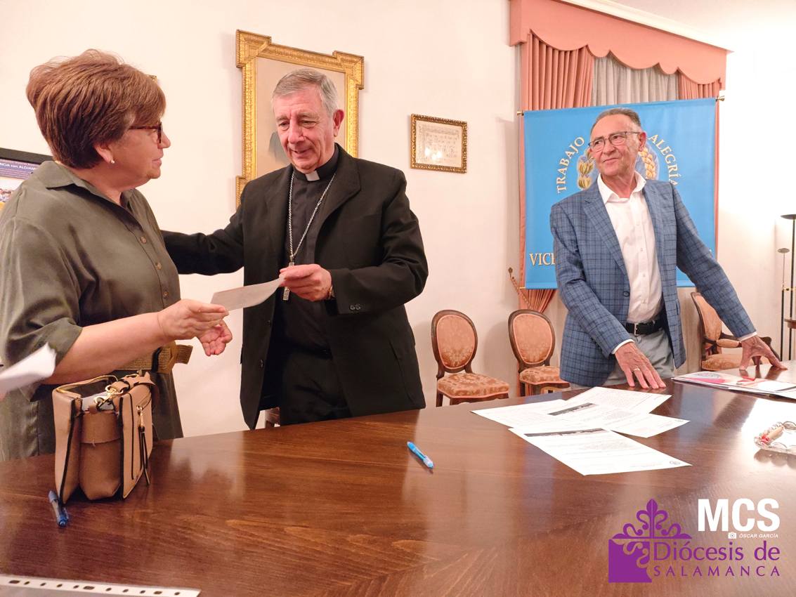 El obispo de la Diócesis de Salamanca, Mons. José Luis Retana, como presidente del patronato de la Fundación, agradeció la labor de las entidades sociales, que cumplen los fines por los que se entregan dichas ayudas económicas. Además, fue el encargado de entregar el cheque a cada uno de ellos.