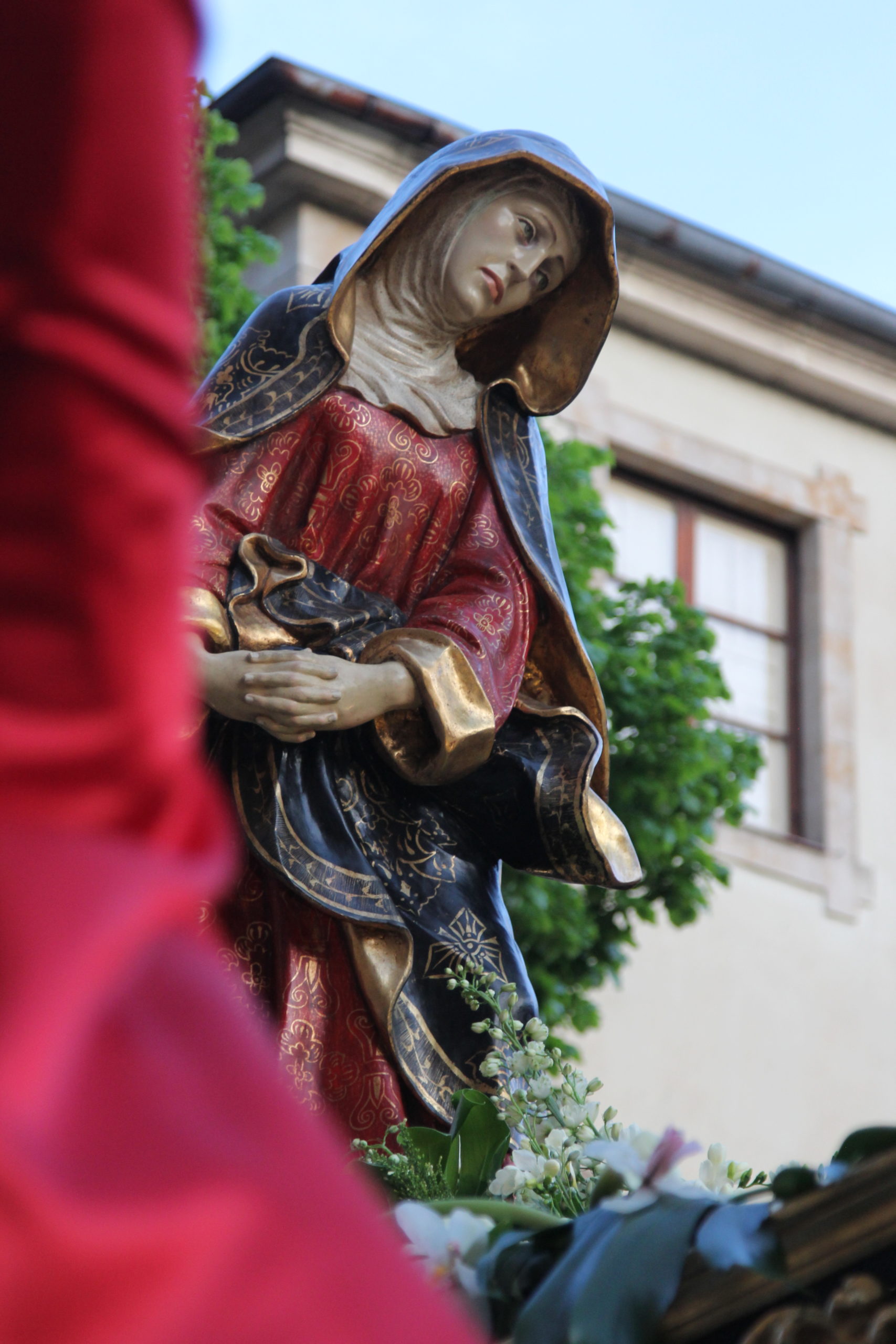 Álvarez también se queda con el regreso y la entrada al templo de nuevo, “cuando vamos subiendo por la avenida de Villamayor, ya sacamos fuerzas de donde no las tenemos para llegar a nuestra casa, y es emotivo ver a la gente del barrio allí esperando, porque siempre tienen un aplauso”. Y la presidenta destaca el momento de volver a subir los 10 escalones del primer tramo, y los 15 del segundo y ya último antes de entrar a la iglesia. “El esfuerzo que hacen los hermanos de carga es impresionante”, admite.