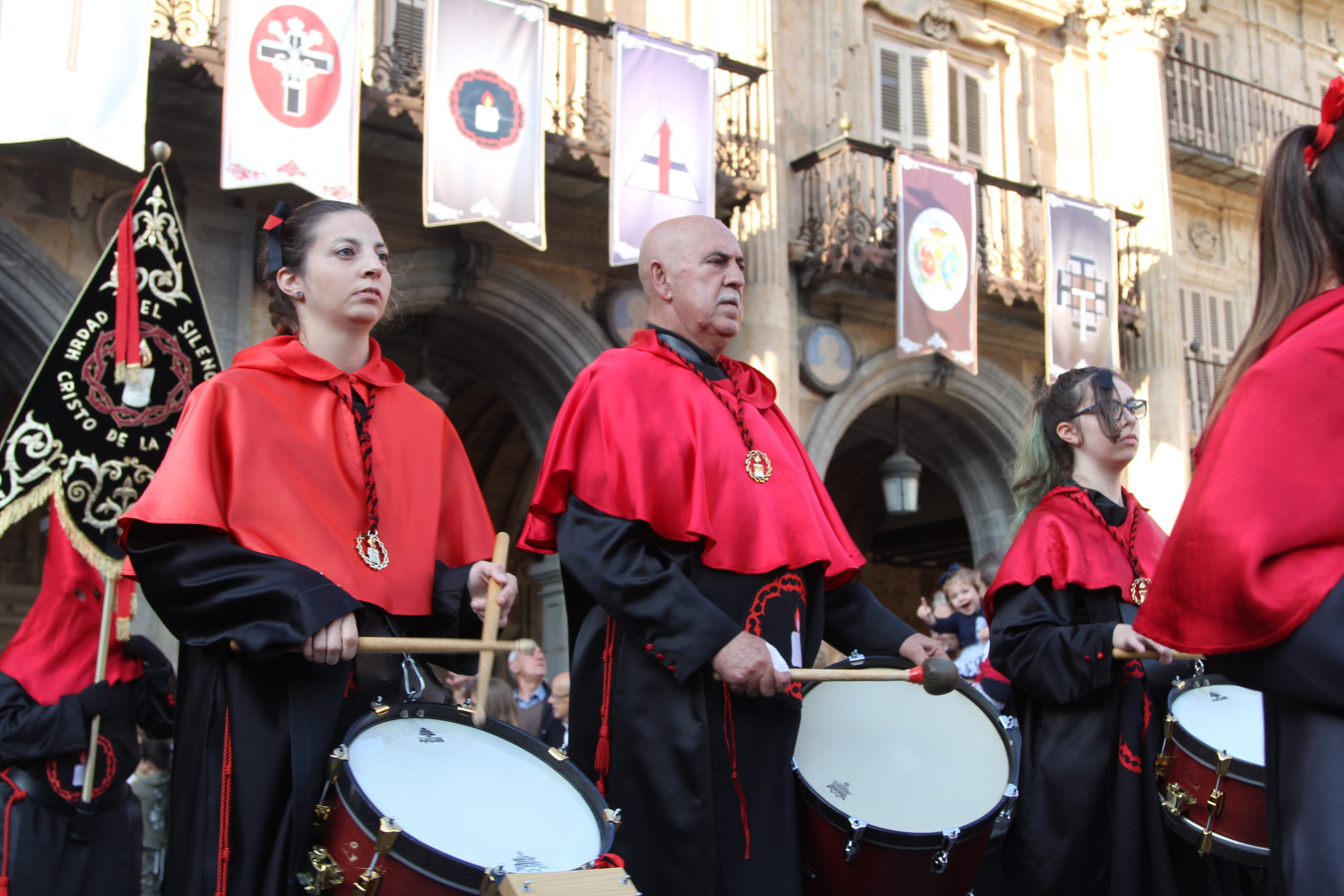 La hermandad también cuenta con una sección de tambores, que acompañan al paso de la Palabra, y detrás de las dos imágenes titulares va la Agrupación Musical Virgen de la Vega, y la Banda de Música Tomás Bretón. Cabe destacar que en el cortejo también sale gente del barrio velando detrás.