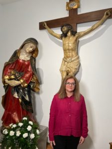 La nueva presidenta es Amparo Álvarez, quien describe cada una de sus dos imágenes titulares. El Cristo de la Vela es un crucificado, “de que casi no tenemos información”, pero, como indica, data de principios del siglo XX, “y procede del Colegio de las Madres Trinitarias”, y está elaborado de escayola, “es posible que provenga de los talleres de la imaginería de Olot”.