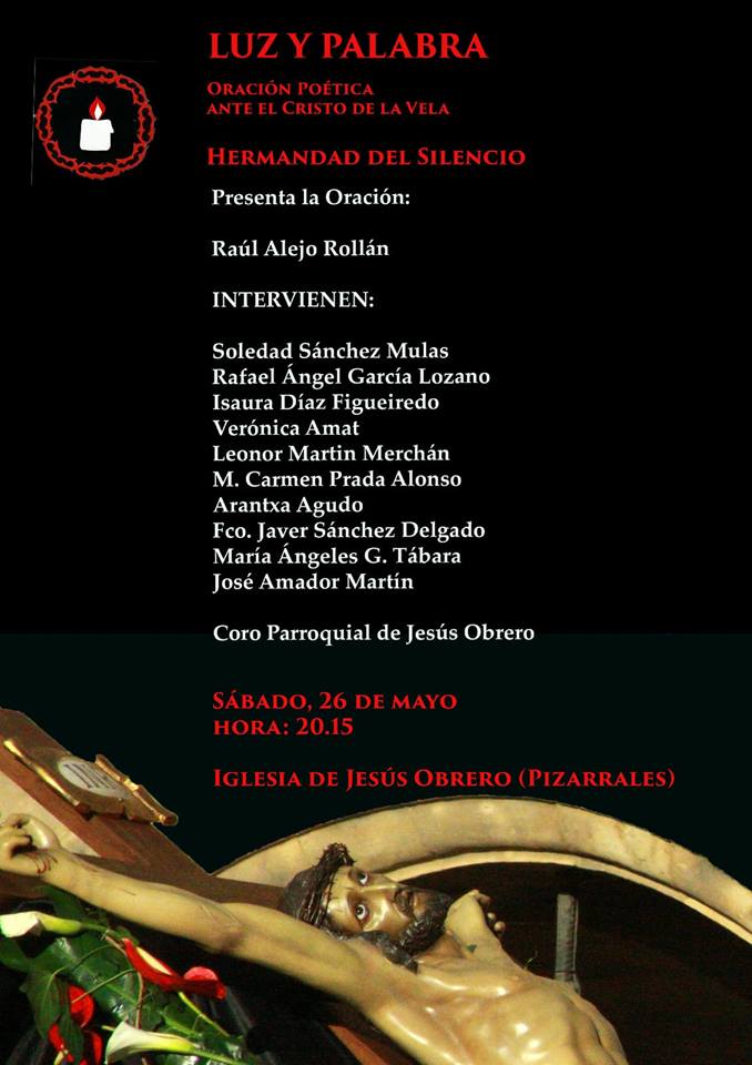 La Hermandad del Silencio celebra este sábado, a las 20.15 horas, el acto ‘Luz y Palabra’, que se desarrollará en la iglesia de Jesús Obrero de Pizarrales y ante el Cristo de la Vela.