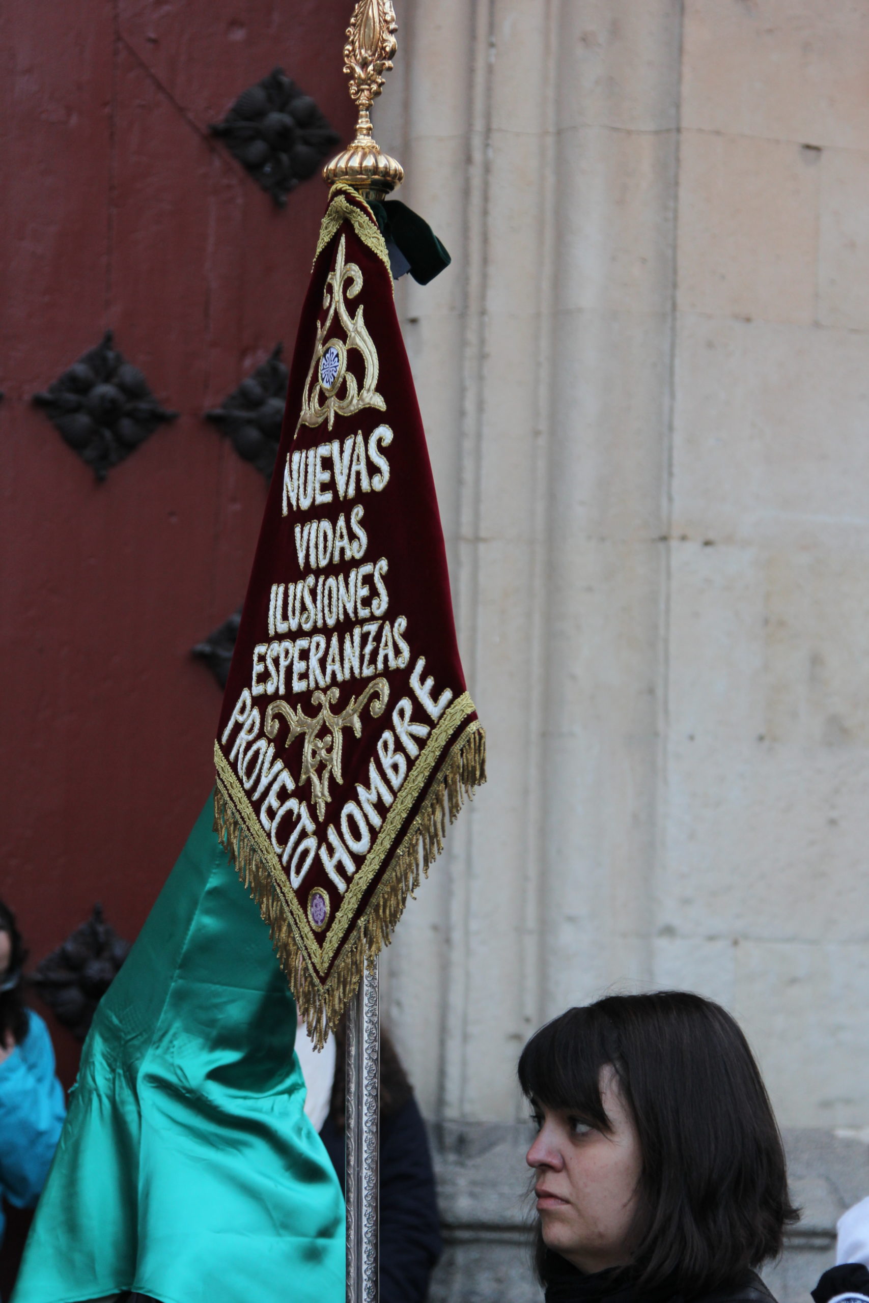 La llegada a la Plaza Mayor queda también siempre para el recuerdo de los hermanos de la Dominicana, “ya es de día, aunque estamos más dispersos en un sitio tan grande”. Algo que les diferencia de otras cofradías, como detalla el hermano mayor, es la manera de llevar el cirio, “que cuando sale por la noche, está apoyado en el fajín de sogas, y cuando amanece, se lleva en posición normal”.
