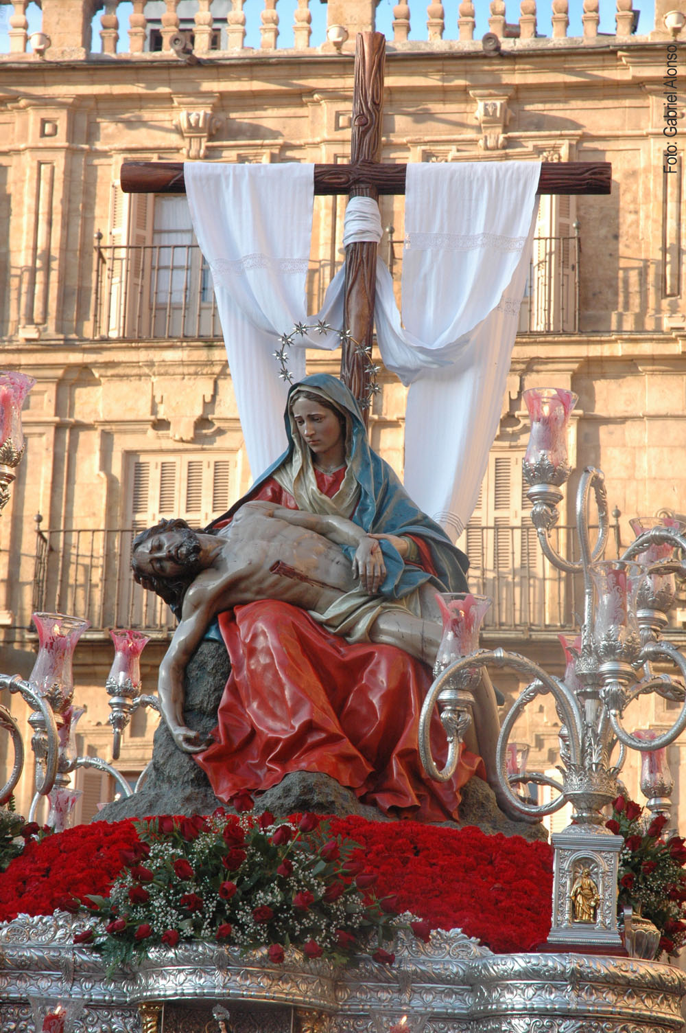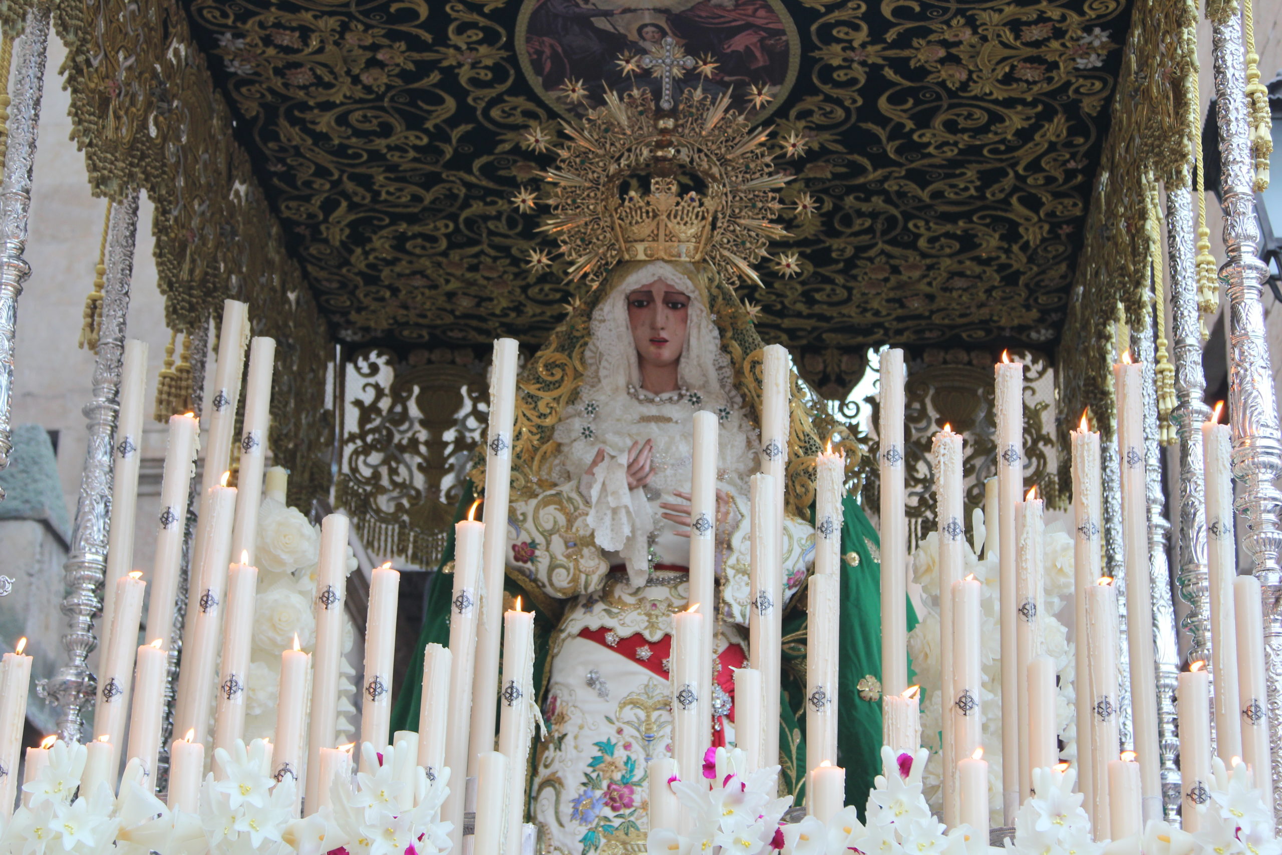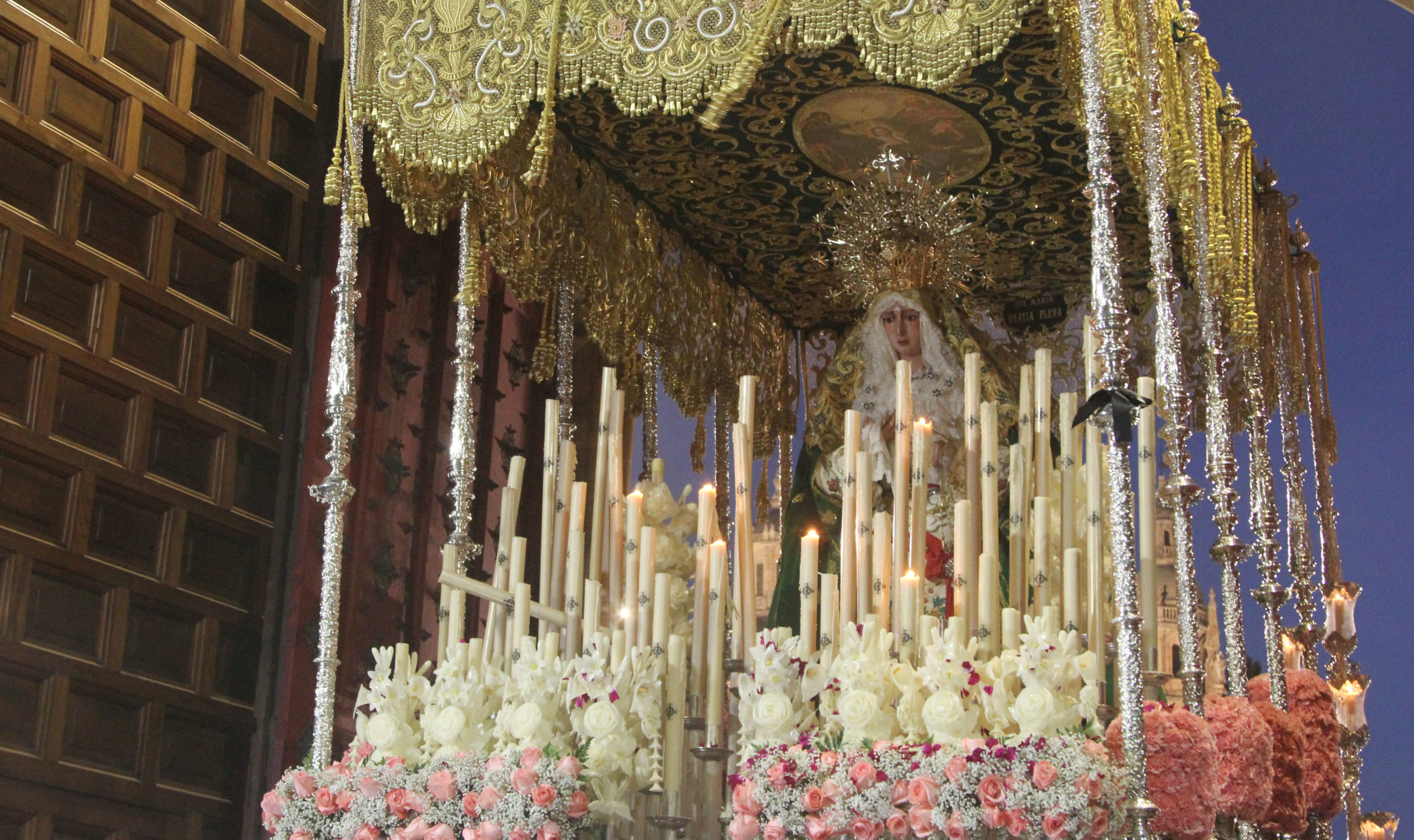 La tercera imagen en salir a la calle es Nuestra Señora de los Dolores, más conocida por La Piedad, de Salvador Carmona, y por último, Nuestra Señora de la Esperanza, bajo palio.