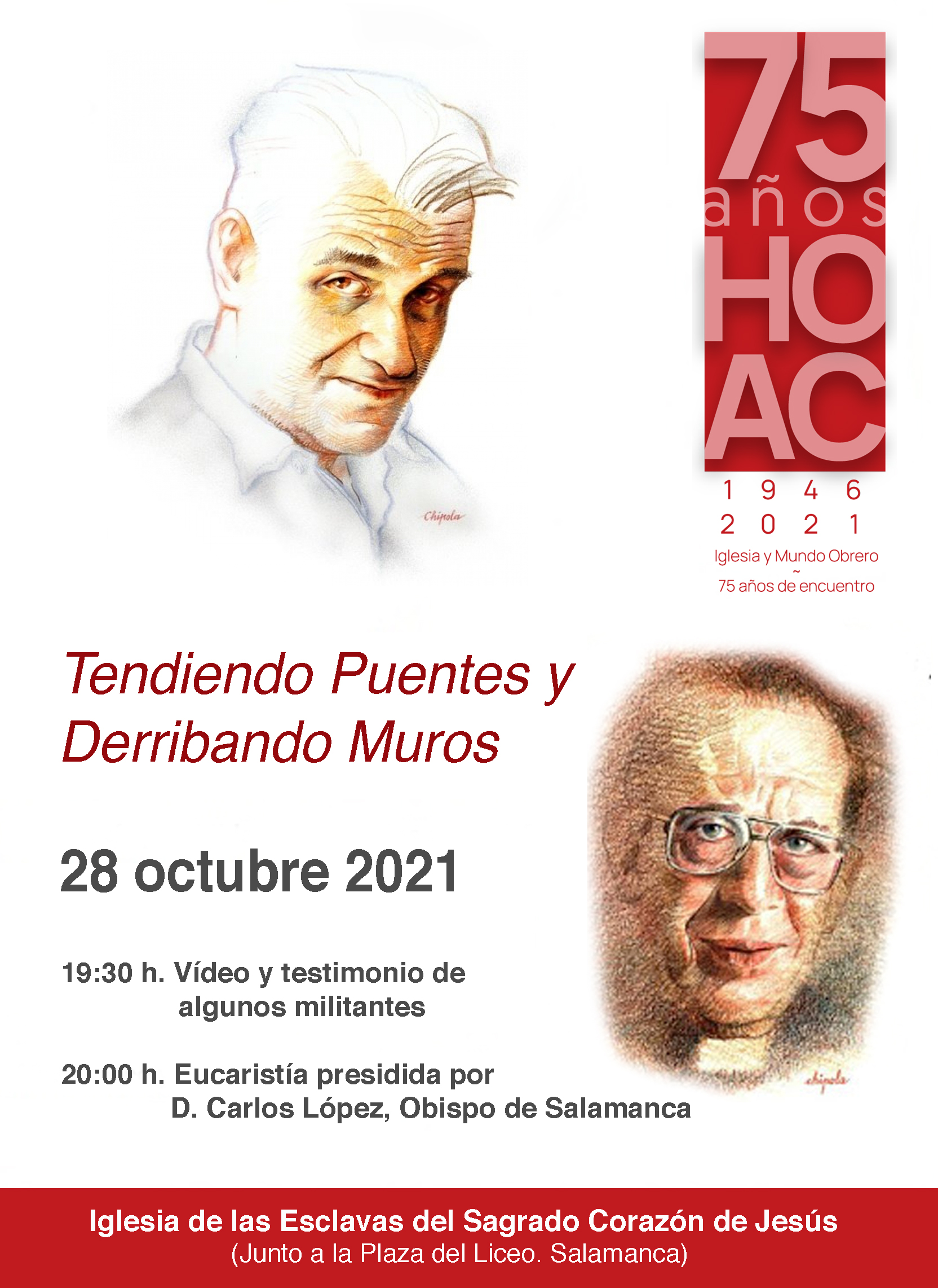 En cuanto al 75 aniversario, lleva por lema “Tendiendo puentes y derribando muros”, y para celebrarlo en Salamanca, antes del inicio de la eucaristía, tendrá lugar la proyección de un vídeo y testimonios de algunos militantes, a las 19:30 horas, en la iglesia de las Esclavas.