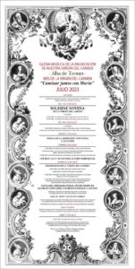 Además, la solemne novena de la Virgen del Carmen se celebrará del 8 al 16 de julio, a diario, con misa a las 12:30 y a las 20:00 horas. El domingo, 9 de julio, la eucaristía se celebrará a las 11:00, y a las 13:00 horas. Después de esta última, comenzará un concierto con órgano de Manuel José Gutiérrez, y la gaita y tamboril de José Ramón Cid. Además, habrá otra misa de novena a las 20:00 horas.