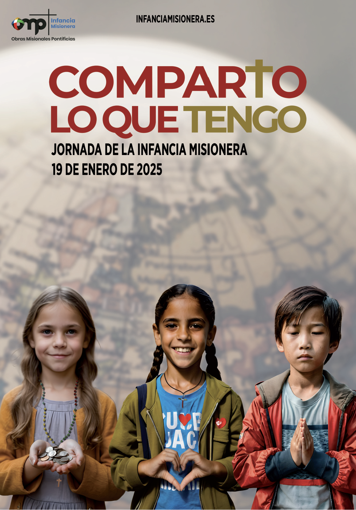 La celebración diocesana de la Jornada de la Infancia Misionera, que este año lleva por lema “Comparto lo que tengo”, tendrá lugar el viernes, 17 de enero, en la iglesia de Santa María del Monte Carmelo, a las 17:00 horas, preparada por las hermanas Josefinas de la Santísima Trinidad con niños y jóvenes de sus colegios. Desde el Servicio diocesano de Misiones se hace un llamamiento a que se sumen todos los niños de catequesis y colegios.