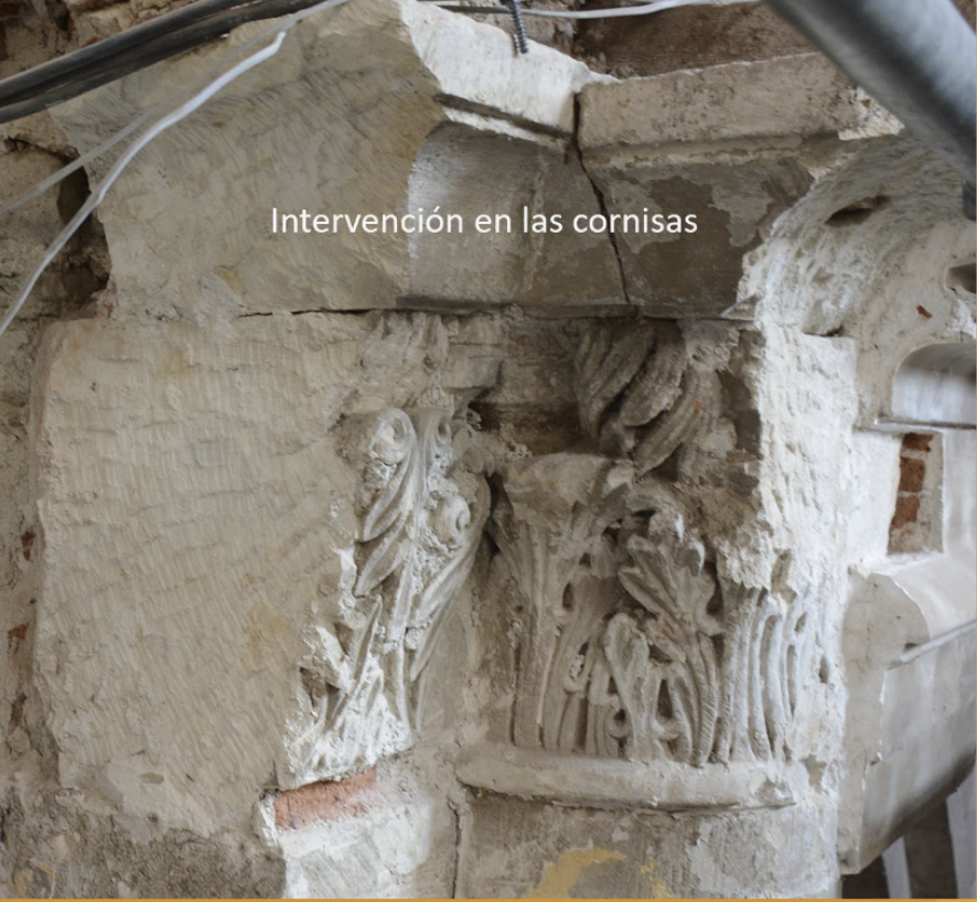 Al respecto, detalla que esos estucos estaban “muy deteriorados por las humedades que había tenido la cubierta“, que ya fue reparada en otra actuación, “pero no las consecuencias de esas humedades”, remarca. Por ese motivo, los morteros “estaban muy mal en algunas zonas, y en algunas había y en otras no”.
