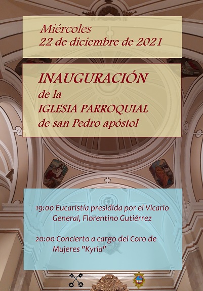 La parroquia de San Pedro Apóstol ha preparado varios actos para conmemorar su reapertura el 22 de diciembre, y que darán comienzo a las 19:00 horas con una eucaristía presidida por el vicario general, Florentino Gutiérrez. Al finalizar, el coro de mujeres “Kyria”, de la Escuela de música de Alba de Tormes, ofrecerá un concierto a las 20:00 horas.